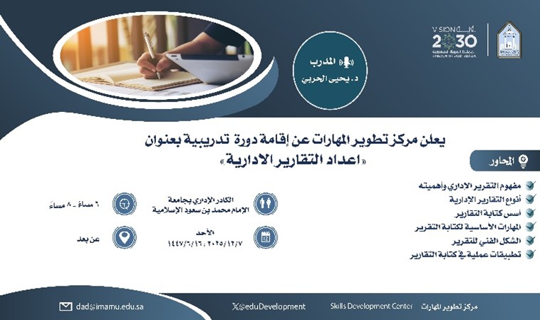 يسُر مركز تطوير المهارات الإعلان عن بدء التسجيل في دورة تدريبية بعنوان