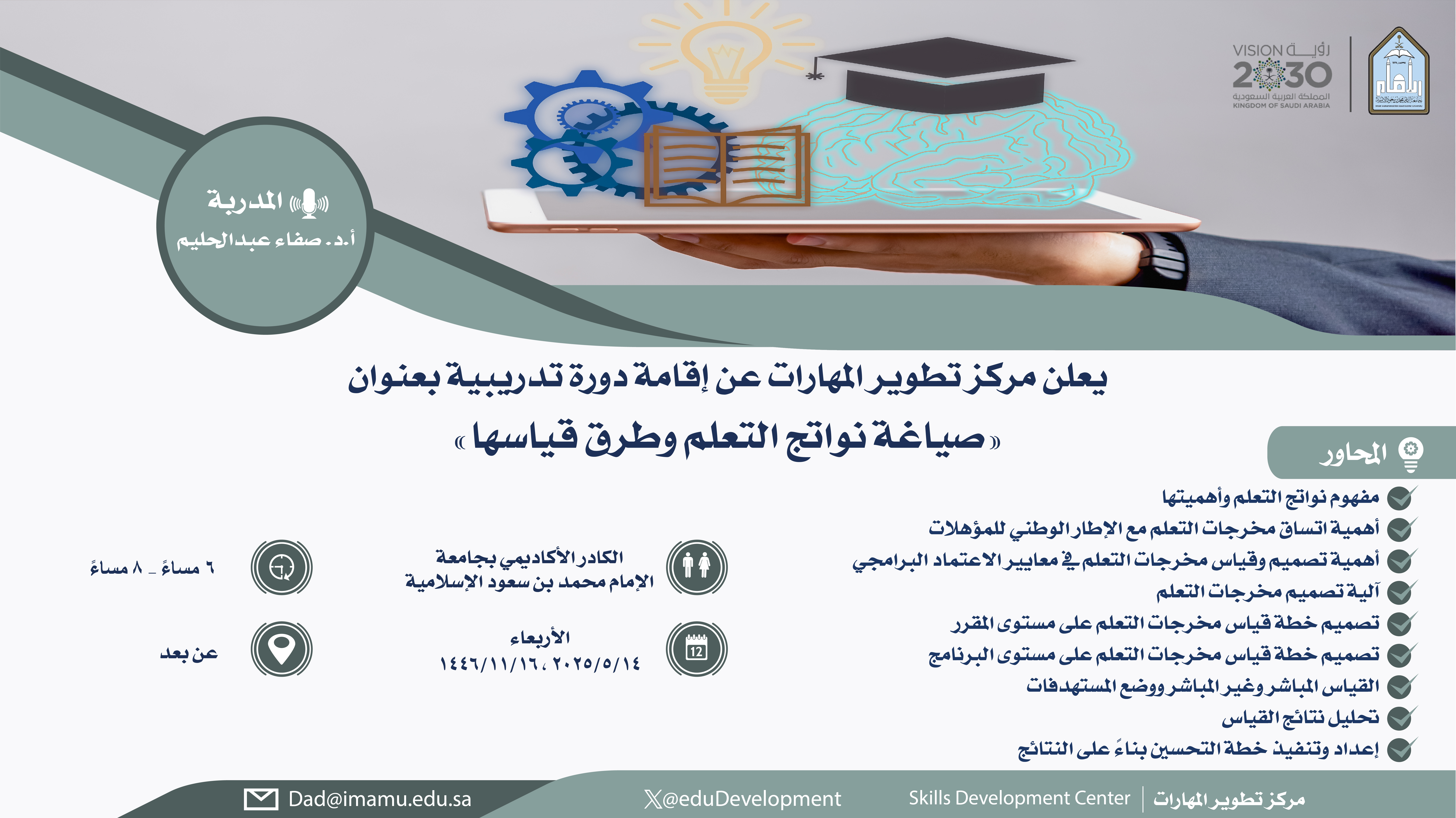 والموجهة إلى الكادر الأكاديمي بجامعة الإمام محمد بن سعود الإسلامية