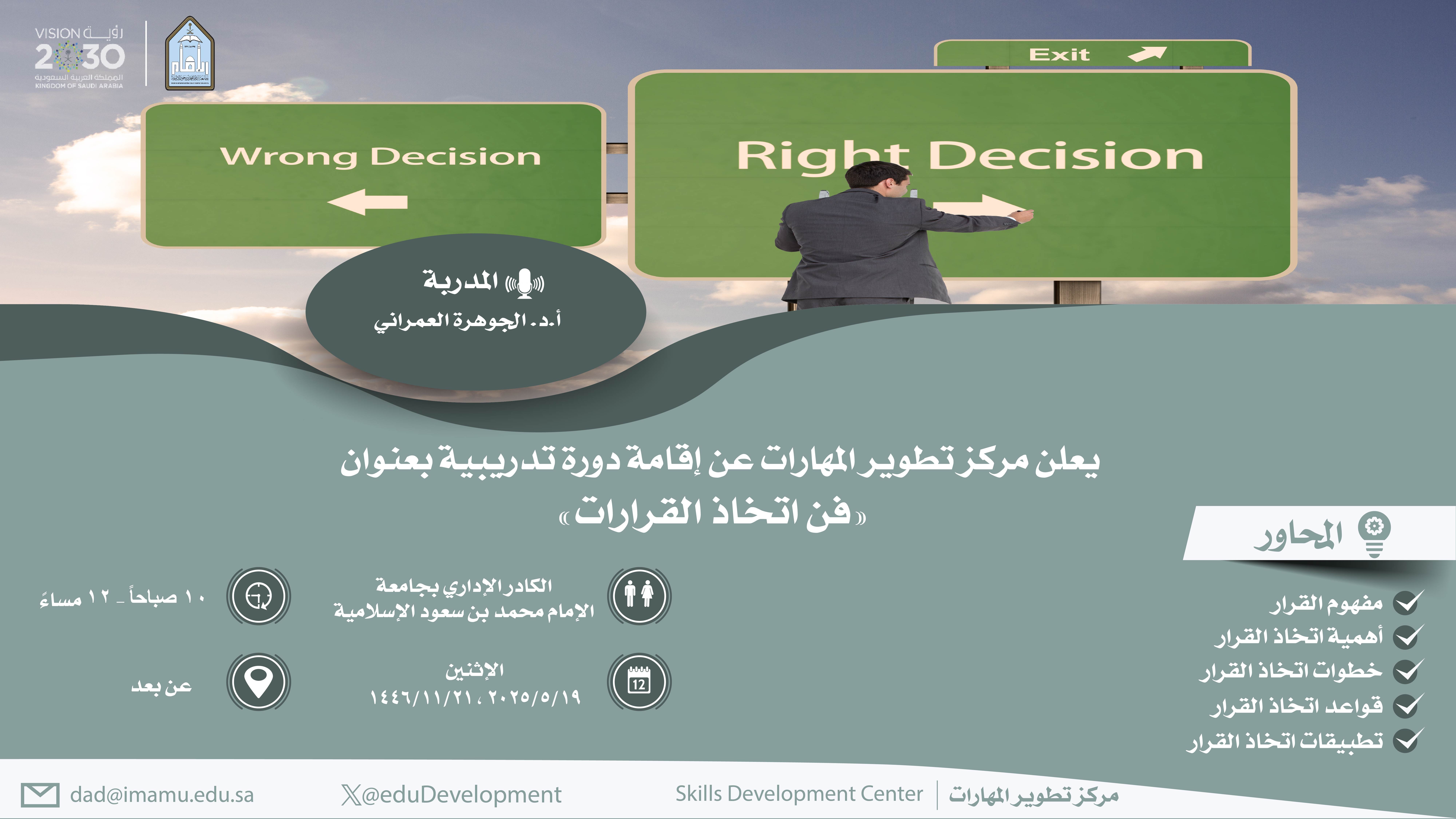 والموجهة إلى الكادر الإداري بجامعة الإمام محمد بن سعود الإسلامية