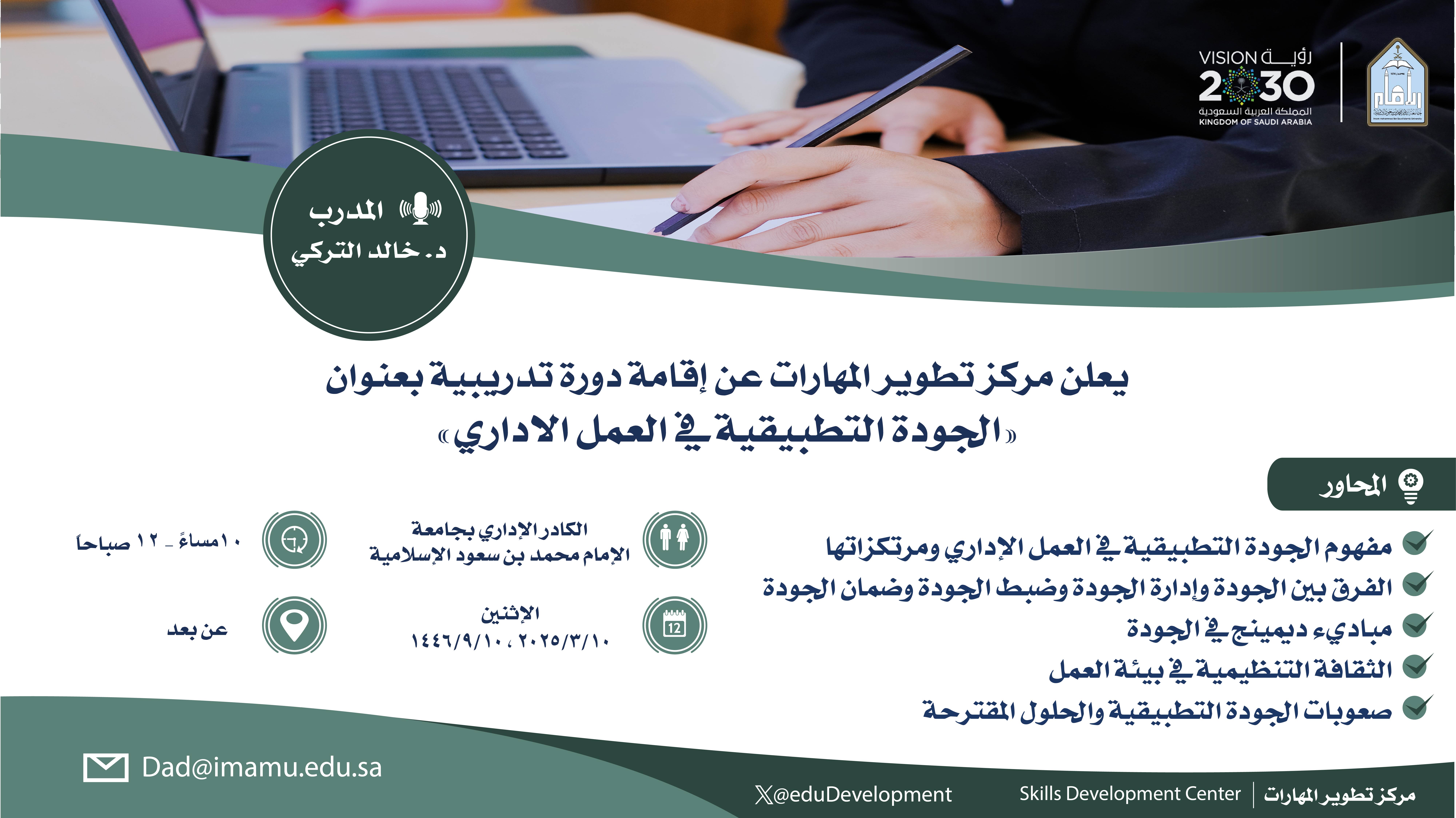 والموجهة إلى الكادر الاداري بجامعة الإمام محمد بن سعود الإسلامية