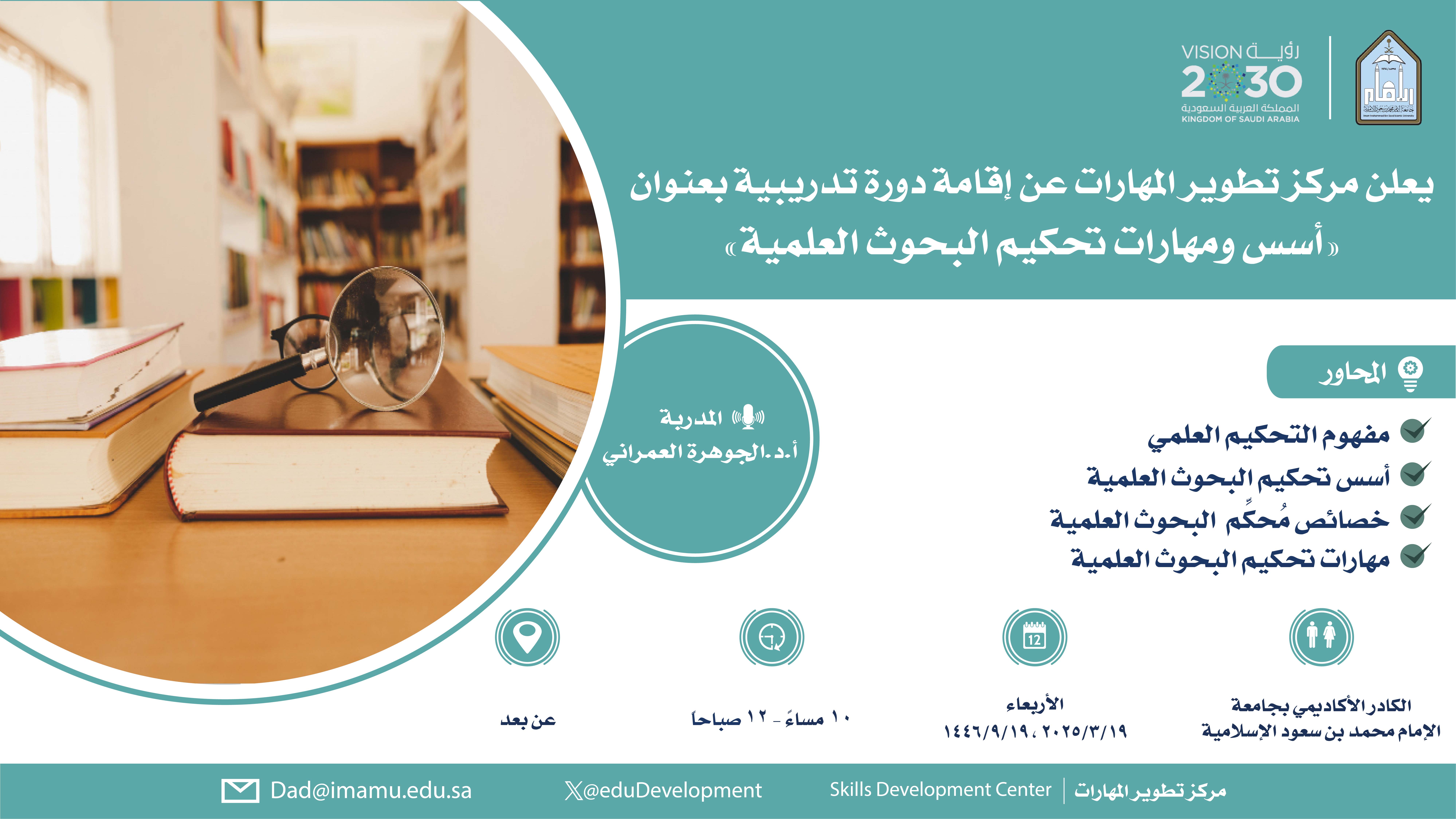 والموجهة إلى الكادر الأكاديمي بجامعة الإمام محمد بن سعود الإسلامية
