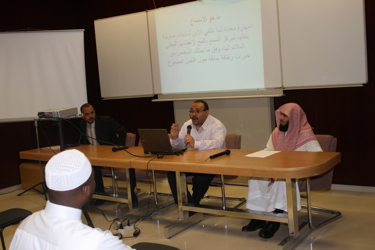وتضمن اللقاء محاضرة قيمة ألقاها د. خلف الديب مستشار البحوث والدراسات بالمعهد حول "الاستماع ودوره في التحصيل الدراسي" وتضمنت مفهوم الاستماع، والفروق الأساسية بين (الاستماع – السمع – الإنصات)، والعوامل المؤثرة في عمليات الاستماع، ودور الاستماع في التحصيل الدراسي، وقد تفاعل الطلاب مع المحاضر، وكانت لهم مداخلات واستفسارات حول موضوع المحاضرة؛ مما أسهم في إثرائها، والخروج بمعلومات وفوائد هامة استفاد منها الحاضرون.