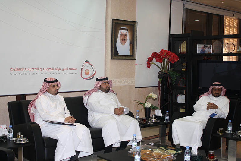 في إطار سعي معهد الأمير نايف للبحوث والخدمات الاستشارية للتعاون بين معاهد البحوث، ونشر ثقافة العمل المشترك في مجال الاستشارات استقبل عميد المعهد د.عبدالعزيز بن ناصر الخريف بمكتبه يوم السبت 9/7/1432هـ كلاً من سعادة الدكتور/ أسامة بن راشد العمري عميد معهد البحوث والدراسات الاستشارية بجامعة أم القرى، وسعادة وكيل المعهد للبحوث والدراسات الاستشارية الدكتور/ سلطان بن عبدالله العبد اللطيف.