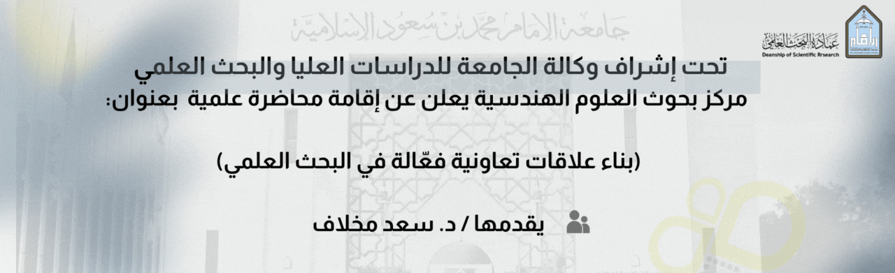مركز بحوث العلوم الهندسية يعلن عن إقامة محاضرة علمية بعنوان: (بناء علاقات تعاونية فعّالة في البحث العلمي)