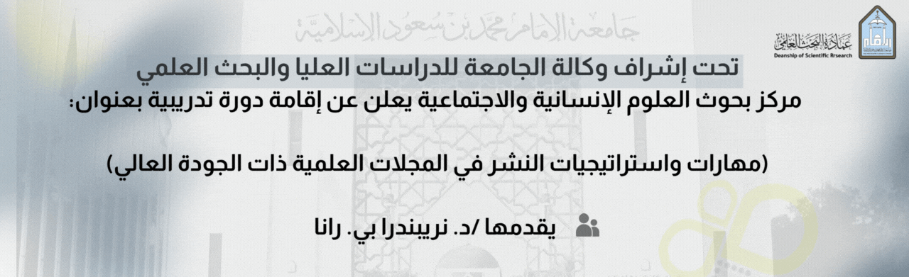 مركز بحوث العلوم الإنسانية والاجتماعية يعلن عن إقامة دورة تدريبية بعنوان: (مهارات واستراتيجيات النشر في المجلات العلمية ذات الجودة العالي)