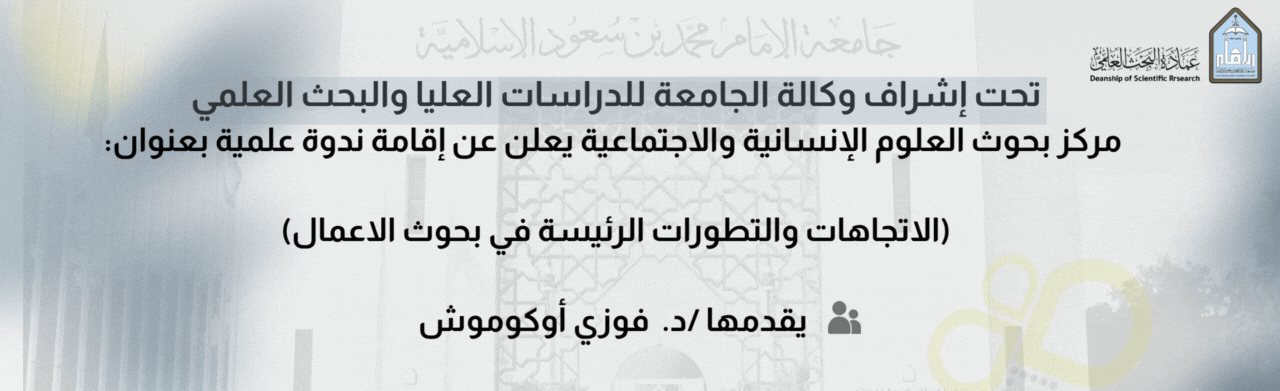 مركز بحوث العلوم الإنسانية والاجتماعية يعلن ن إقامة ندوة علمية بعنوان (الاتجاهات والتطورات الرئيسة في بحوث الاعمال)