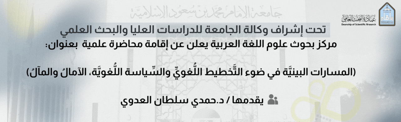 مركز بحوث علوم اللغة العربية يعلن عن إقامة محاضرة علمية بعنوان: (المسارات البينيَّة في ضوء التَّخطيط اللُّغويِّ والسِّياسة اللُّغويَّة، الآمالُ والمآلُ)