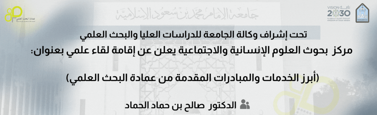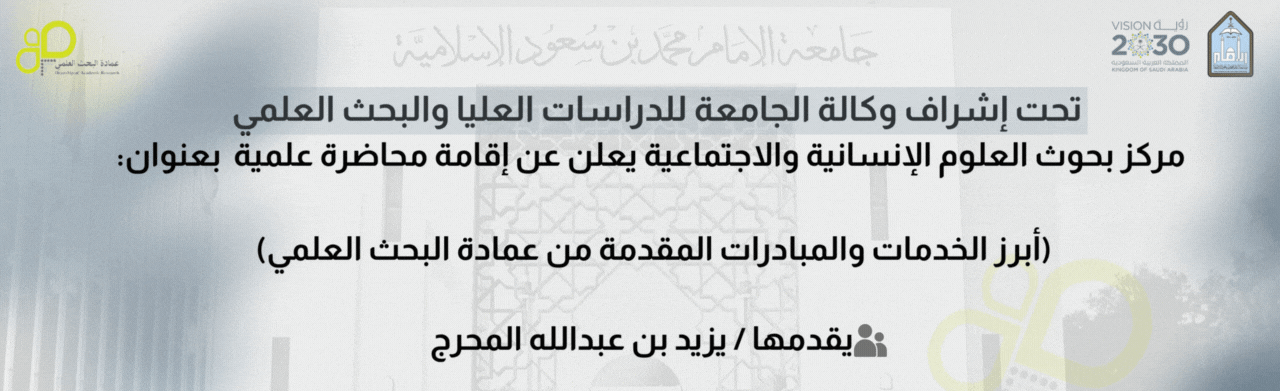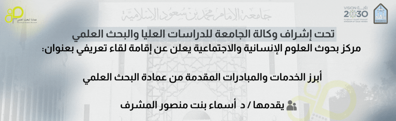 مركز بحوث العلوم الإنسانية والاجتماعية يعلن عن اقامة لقاء علمي بعنوان: (أبرز الخدمات والمبادرات المقدمة من عمادة البحث العلمي)