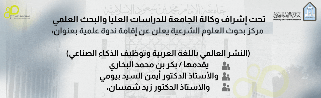 مركز بحوث العلوم الشرعية يعلن عن إقامة ندوة علمية بعنوان: (النشر العالمي باللغة العربية وتوظيف الذكاء الصناعي)