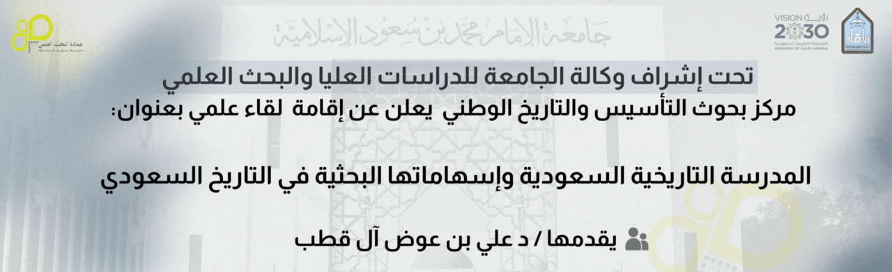 مركز بحوث التأسيس والتاريخ الوطني يعلن عن إقامة لقاء علمي بعنوان: (المدرسة التاريخية السعودية وإسهاماتها البحثية في التاريخ السعودي)