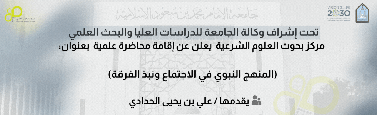 مركز بحوث العلوم الشرعية يعلن عن إقامة محاضرة علمية بعنوان: (المنهج النبوي في الاجتماع ونبذ الفرقة)