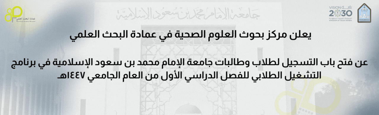 مركز بحوث العلوم الصحية في عمادة البحث العلمي يعلن عن فتح باب التسجيل للطلاب والطالبات في برنامج التشغيل الطلابي