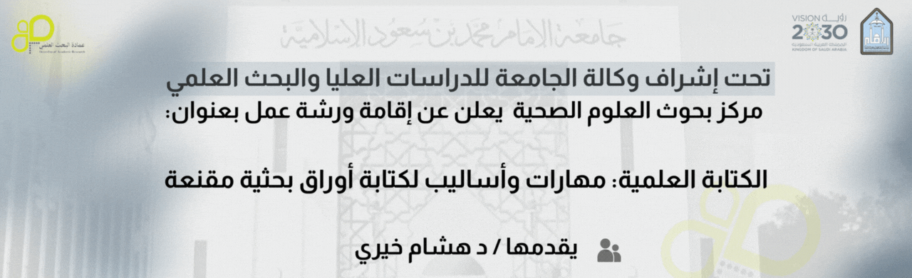مركز بحوث العلوم الصحية يعلن عن إقامة ورشة عمل بعنوان: (الكتابة العلمية: مهارات وأساليب لكتابة أوراق بحثية مقنعة