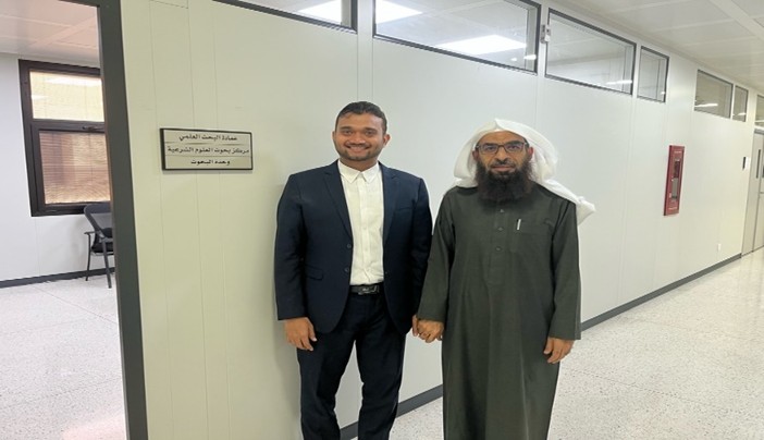 استقبل مركز بحوث العلوم الشرعية بعمادة البحث العلمي في جامعة الإمام محمد بن سعود الإسلامية يوم الاثنين 2025/12/15م المستشار العلمي ورئيس قسم الفقه وأصوله بالجامعة الإسلامية العالمية بماليزيا د. سيد محمد حسن، حيث التقى بعدد من القيادات الأكاديمية المتخصصة في الفقه الطبي وشارك في فعاليات تعليمية لطلبة الدراسات العليا بكلية الشريعة.