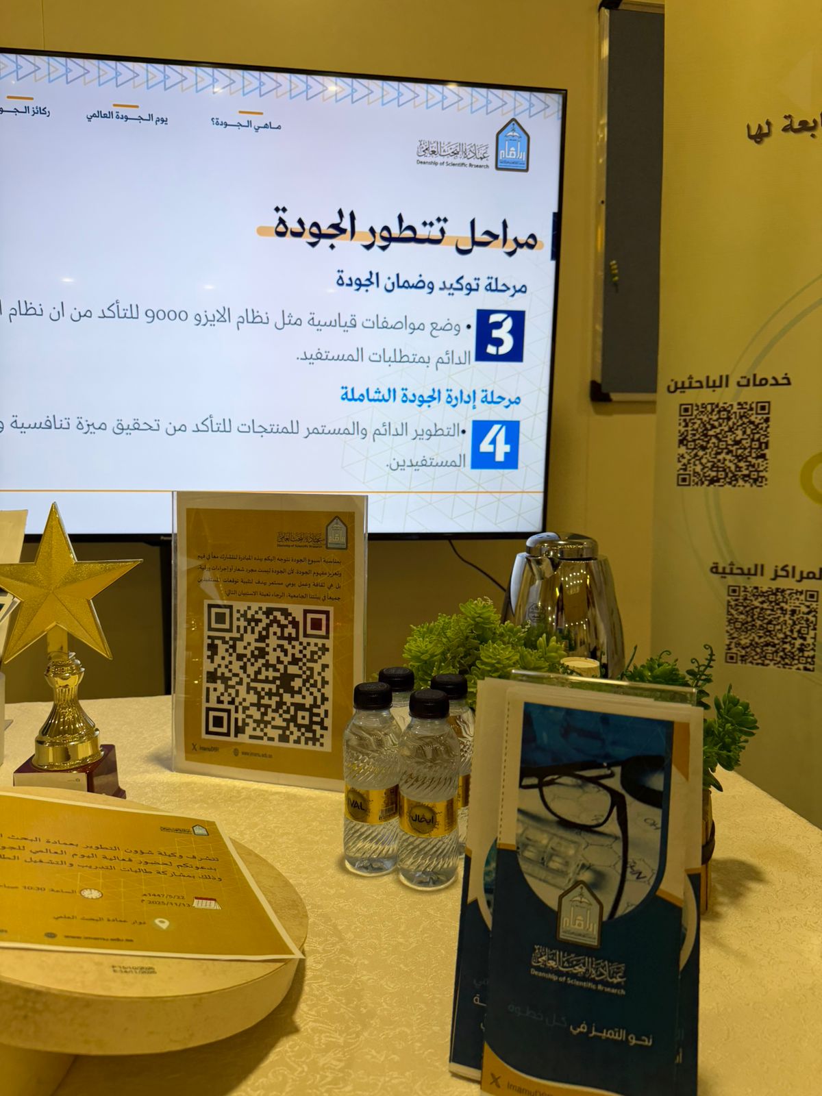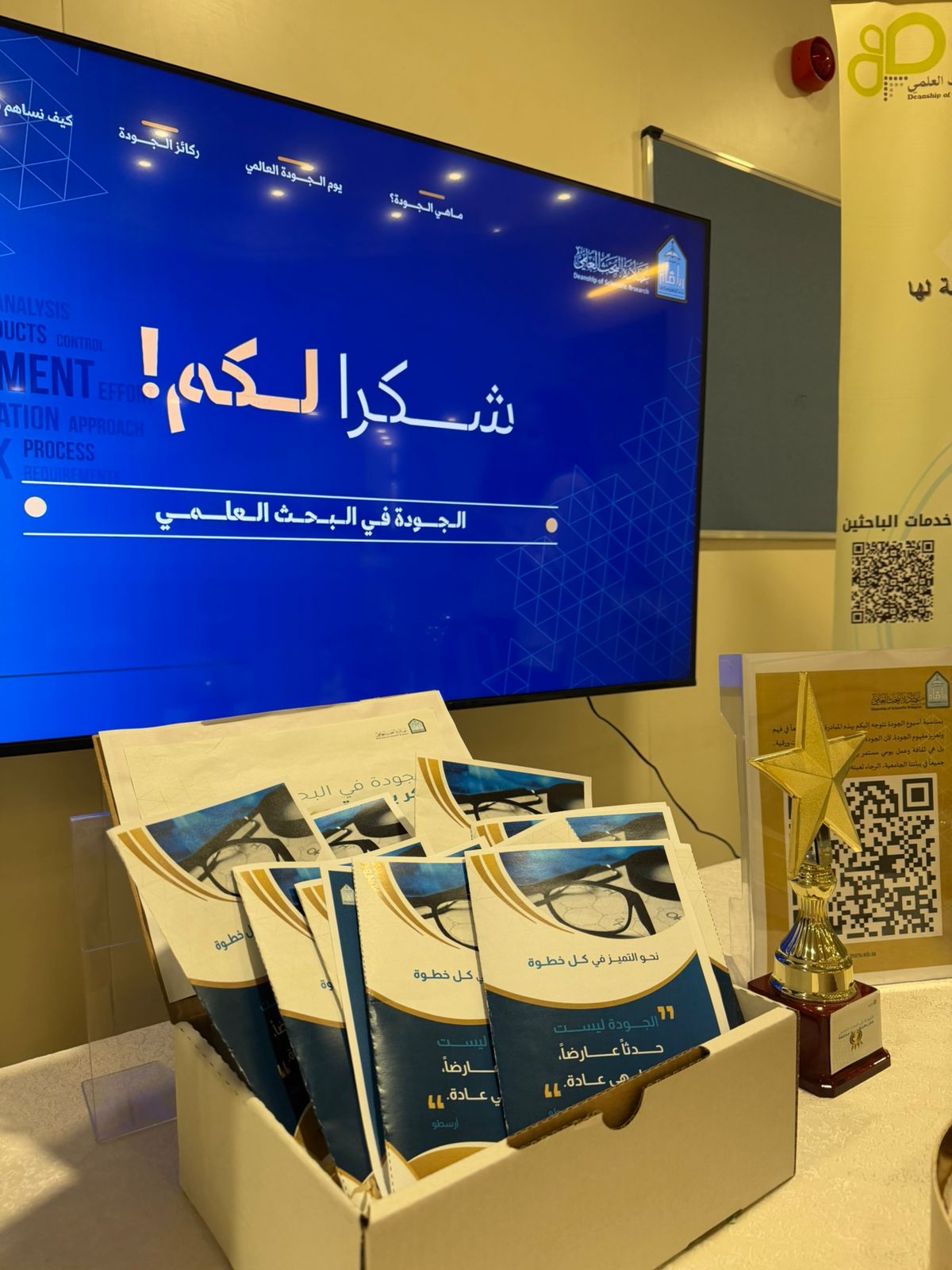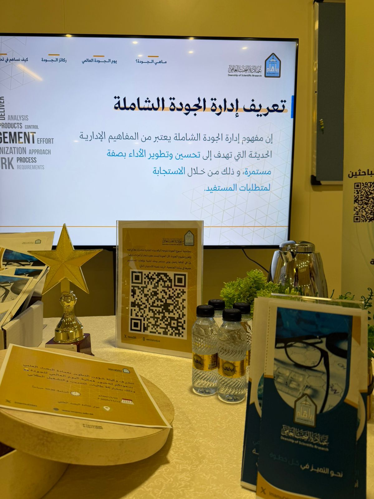 ضمن جهود الجامعة في تعزيز ثقافة الجودة والتميز المؤسسي..عمادة البحث العلمي تقيم ركنًا بمناسبة اليوم العالمي للجودة