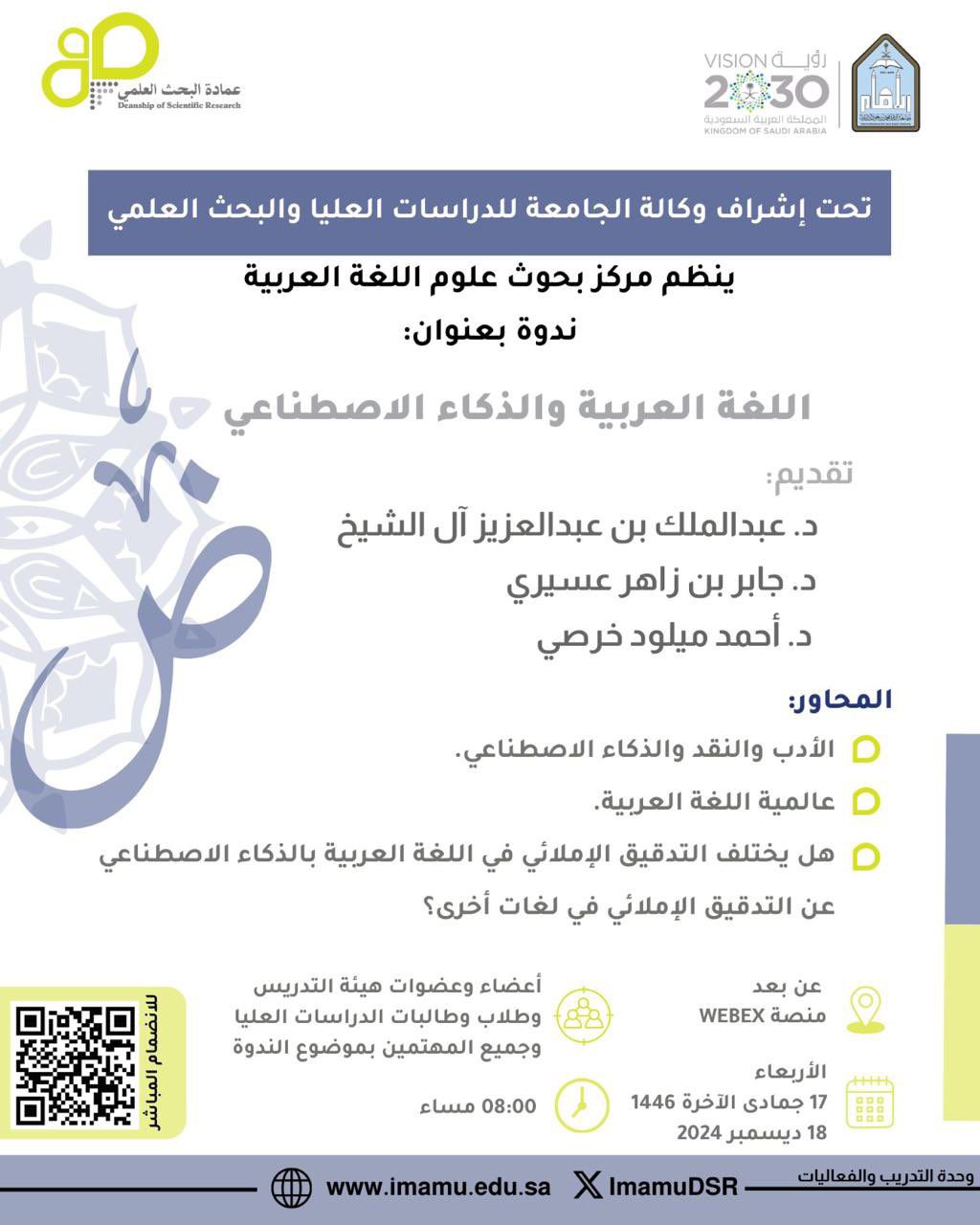 مركز بحوث علوم اللغة العربية ينظم دورة علمية بعنوان :(اللغة العربية والذكاء الأصطناعي)