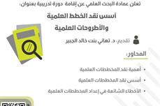 عمادة البحث العلمي تنظم دورة تدريبية بعنوان (أسس نقد الخطط العلمية والأطروحات العلمية)