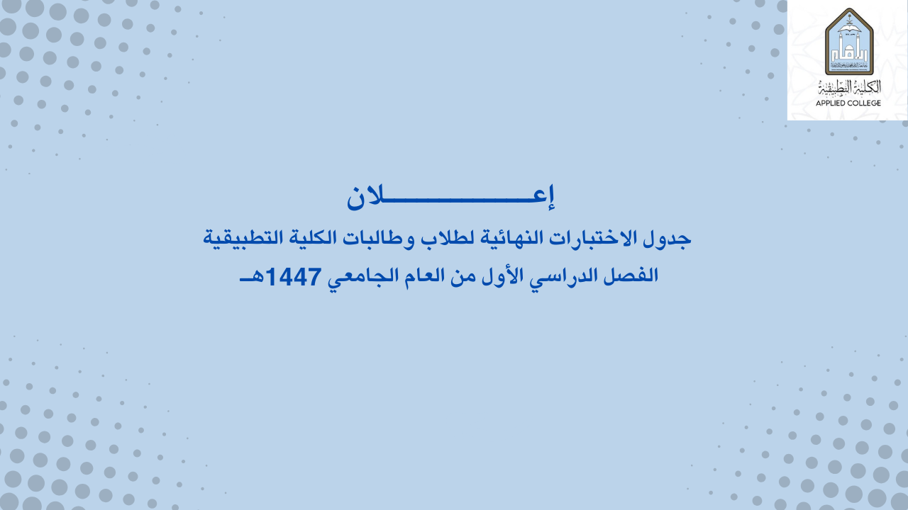 جدول الاختبارات لطلاب وطالبات الكلية التطبيقية الفصل الدراسي الأول من العام الجامعي 1447هــ