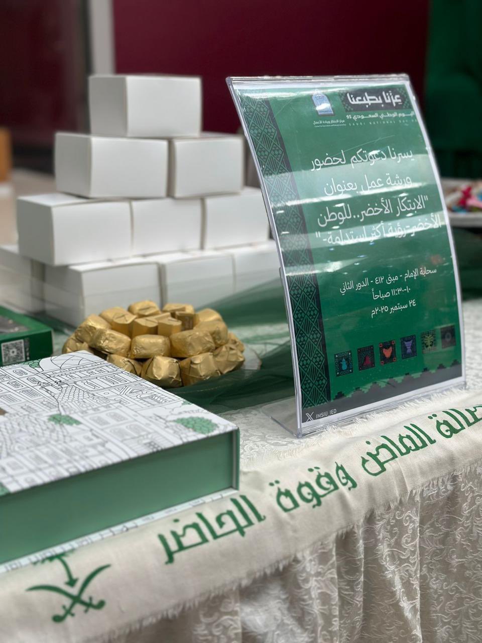 With the support of His Excellency the President of Imam Mohammad Ibn Saud Islamic University, Professor Dr. Ahmed bin Salem Al-Amri, the King Abdullah City for Female Students at the University recognized the 95th Saudi National Day on the morning of Wednesday, September 24, 2025, embracing the theme “Our Pride is Our Identity." The celebration featured the University Vice President for Institutional Development and Social Responsibility, Dr. Kholoud Fawaz Al-Tamimi, alongside various university leaders, faculty members, and students, all immersed in a patriotic atmosphere that showcased pride in the nation and its accomplishments.
