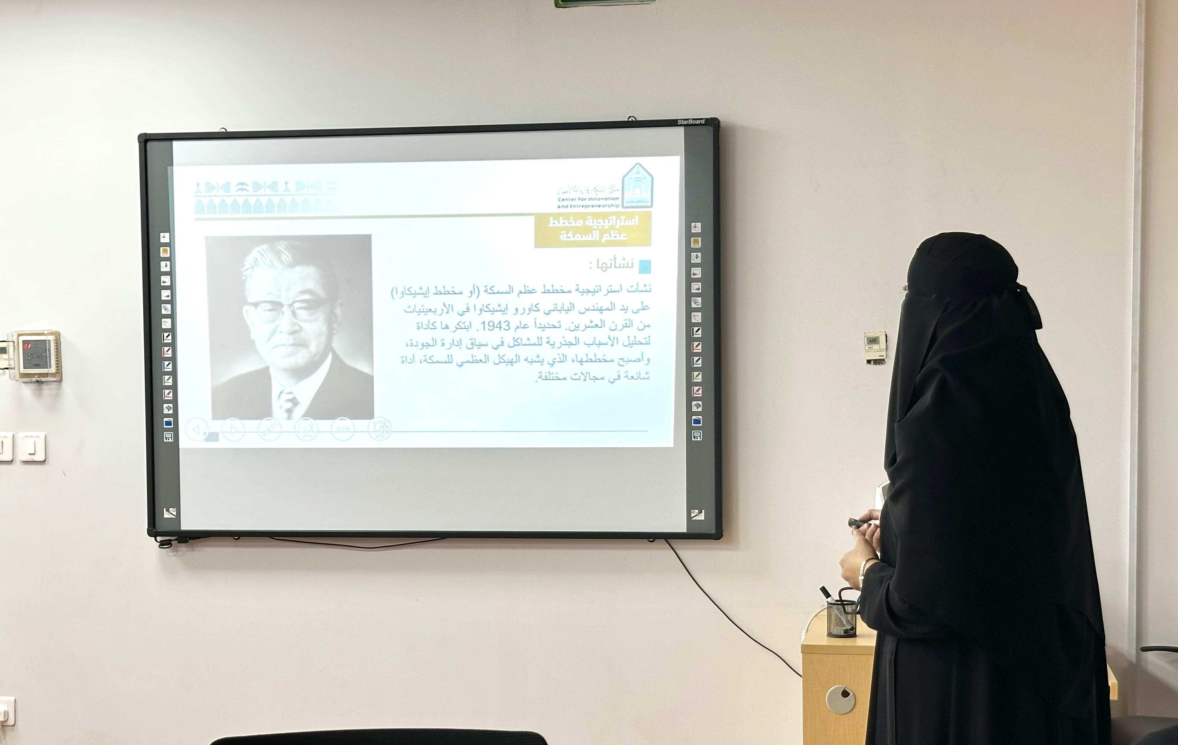 كما اشتملت الورشة على شرح عملي لاستراتيجية مخطط عظم السمكة لتحديد المشكلات وتحليل أسبابها، بالإضافة إلى التدريب على استراتيجية CPS لتوليد الحلول الإبداعية وتقويمها وفق منهجية علمية تسهم في رفع جودة المخرجات والأفكار المطروحة.