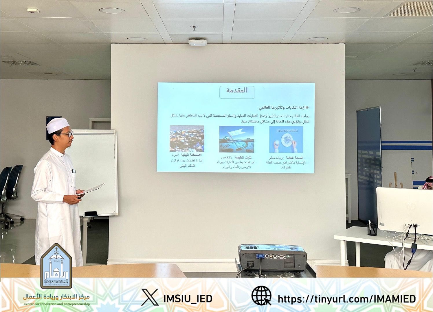 انطلقت صباح اليوم الأحد الموافق 11 / 5 / 2025 في سحابة الإمام – مبنى العمادات المساندة (ب)، أولى جلسات تحكيم مسابقة جامعة الإمام للابتكار في نسختها الثانية، التي ينظمها مركز الابتكار وريادة الأعمال تحت شعار “الاستدامة البيئية"، بمشاركة أكثر من 23 مشروع ابتكاري.