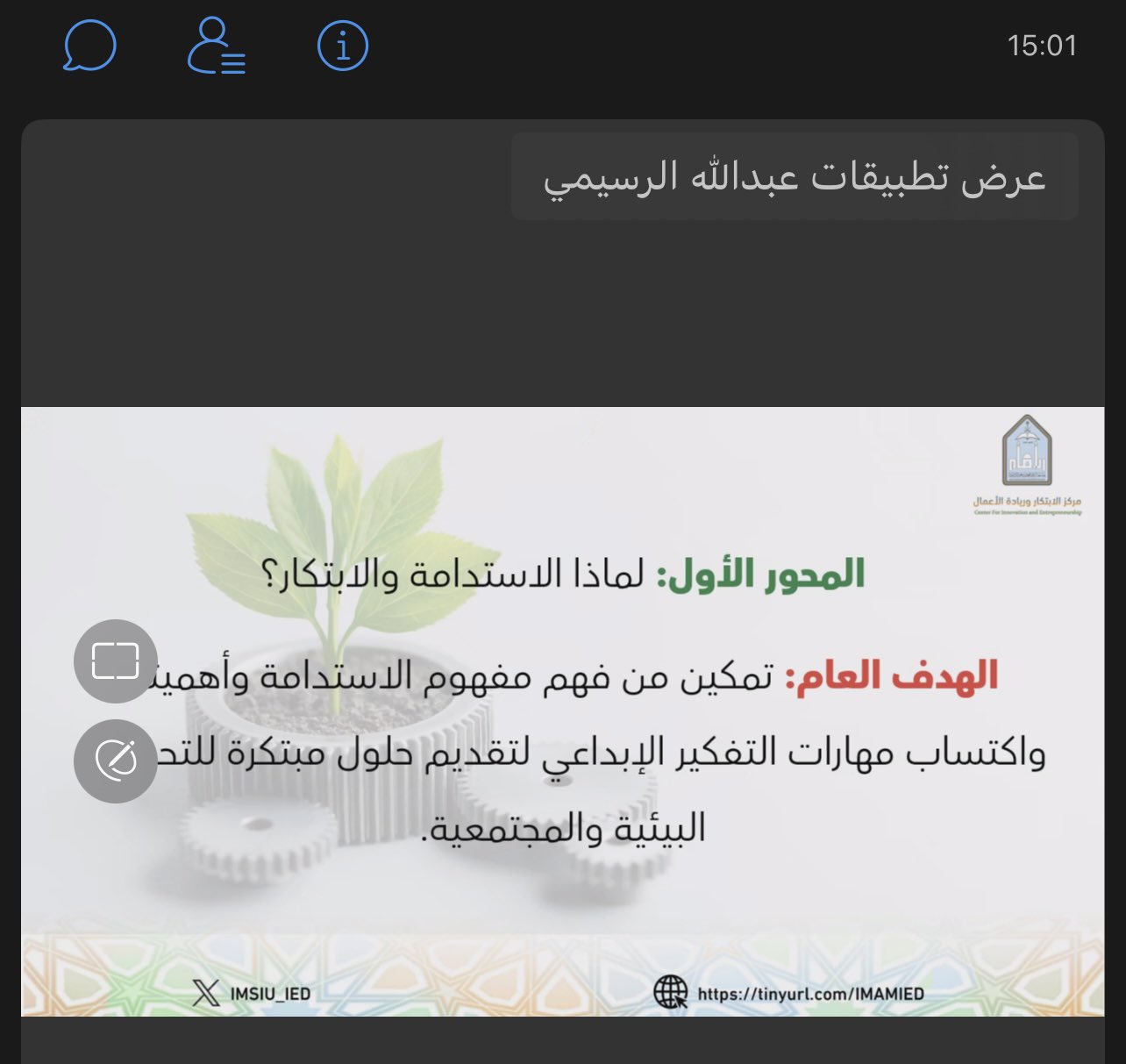 مركز الابتكار وريادة الأعمال يقيم دورة تدريبية بعنوان "الاستدامة بالإبداع: حلول مبتكرة لمستقبل أفضل"