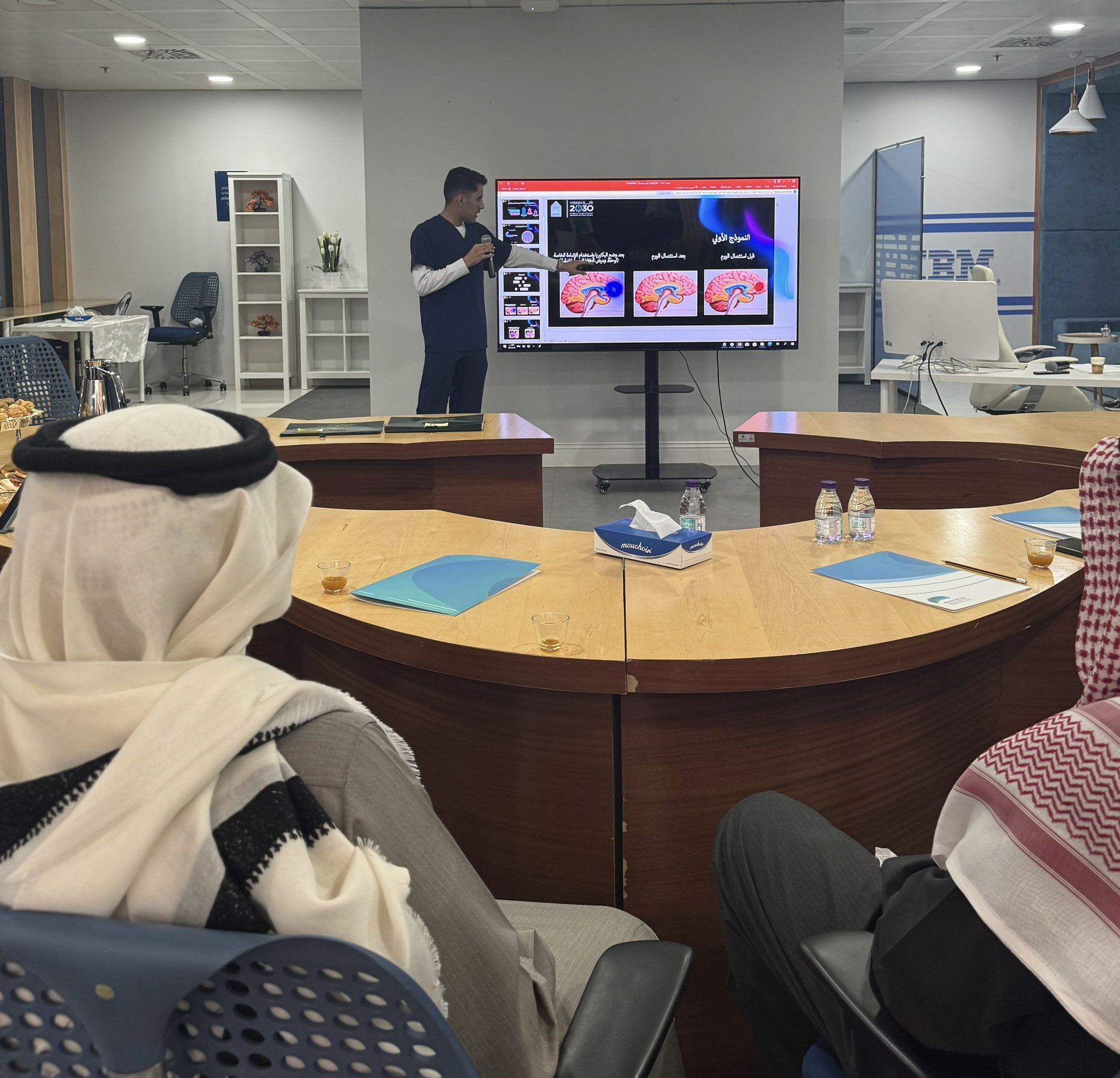 استضاف مركز الابتكار وريادة الأعمال يوم الأربعاء الموافق 24 ديسمبر 2025، في مقر حاضنة الأعمال سحابة الإمام، الباحثين الزائرين الأستاذ الدكتور محمد سليمان والأستاذ الدكتور أشرف البندري، وذلك في زيارة علمية تهدف إلى دعم منظومة الابتكار وتعزيز جودة المشاريع البحثية والابتكارية في الجامعة.