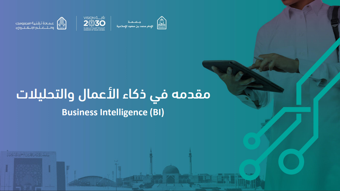 امتدادًا للتعاون القائم بين عمادة تقنية المعلومات والتعلم الإلكتروني وكلية علوم الحاسب والمعلومات، قدمت الدورة الدكتورة صالحه العتيبي -أستاذ مساعد بكلية علوم الحاسب والمعلومات بقسم نظم المعلومات، شملت الدورة على عدة محاور منها: تعريف بذكاء الأعمال والتحليلات وأهميتها، طرق جمع وتنظيم البيانات المطلوبة لإجراء التحليل 'أنواع التمثيل الرسومي للبيانات والمعلومات، معرفة طرق تجميع البيانات وتحليلها ومعالجتها وربطها مع برنامج (MS Power BI)، وطرق عرض البيانات وتصويرها (Data Visualization) وإنشاء التقارير ولوحات العرض(Dashboard).