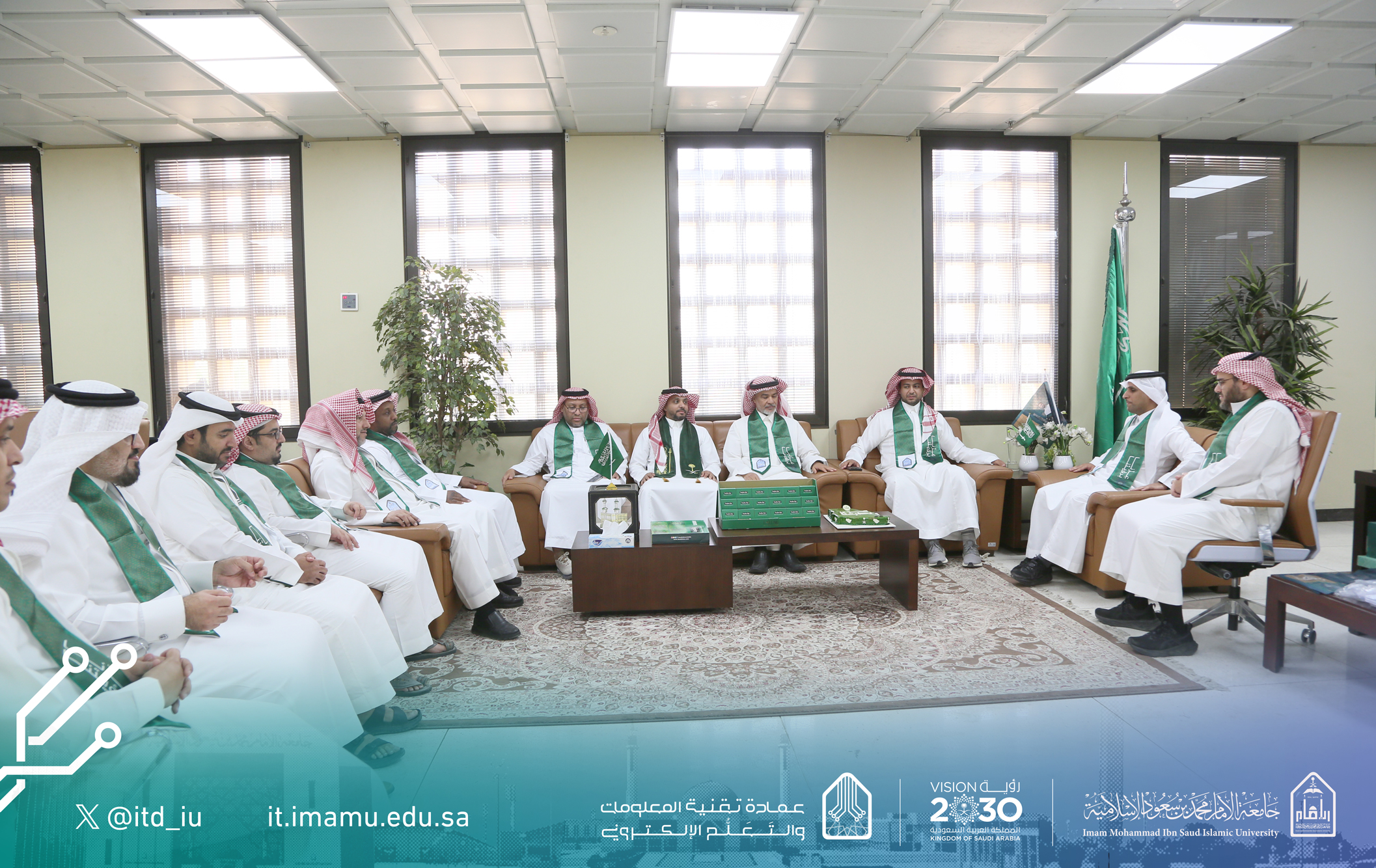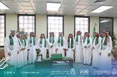 ​​نظمت عمادة تقنية المعلومات والتعلم الإلكتروني يوم الأربعاء 24 سبتمبر، احتفالاً بمناسبة اليوم الوطني السعودي الخامس والتسعين (95) لمملكتنا الغالية، بحضور سعادة عميد تقنية المعلومات والتعلم الإلكتروني الدكتور سلطان بن سعود القحطاني، وسعادة وكيل العمادة لتقنية المعلومات د. هشام الهليل ، وسعادة وكيل العمادة للتعلم الإلكتروني د. عبدالله الشمراني، وعدد من مسؤولي العمادة، وذلك في مقر العمادة، وألقى سعادة العميد كلمة بهذه المناسبة رفع فيها أسمى آيات التهاني والتبريكات إلى مقام خادم الحرمين الشريفين الملك سلمان بن عبدالعزيز آل سعود وولي عهده الأمين رئيس مجلس الوزراء صاحب السمو الملكي الأمير محمد بن سلمان بن عبدالعزيز آل سعود - حفظهم الله -.