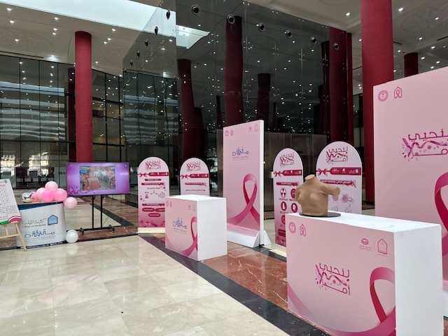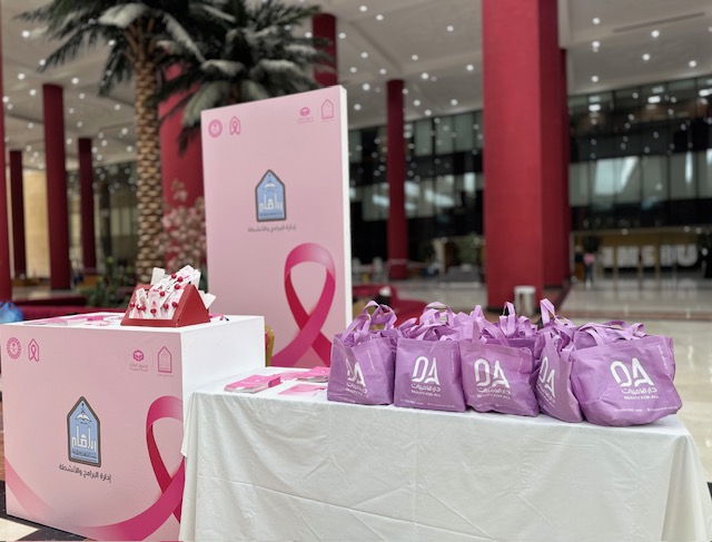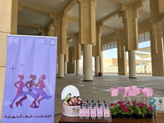 نظمت عمادة شؤون الطلاب ممثلة بإدارة البرامج والأنشطة وبدعم من صندوق الطلاب حملة التوعية بسرطان الثدي تحت شعار التبكيرة خَيرة، وذلك يوم الاثنين السابع والعشرين من شهر أكتوبر من العام ألفين وخمسة وعشرين من السنة الميلادية، في بهو المبنى الإداري بمبنى 416 وذلك في تمام التاسعة صباحًا وحتى الواحدة ظهرًا، حضر هذا المعرض سعادة وكيلة عمادة شؤون الطلاب لشؤون الطالبات د. عهود بنت عثمان المنيع وسعادة مديرة الإدارة العامة لمدينة الملك عبدالله للطالبات أ. مزنة بنت ناصر أبا الخيل وجمعُ من موظفات الجامعة وطالباتها، يأتي ذلك ضمن جهود عمادة شؤون الطلاب في تعزيز الوعي الصحي لطالبات الجامعة ومنسوباتها، من خلال تعزيز الوعي بسرطان الثدي، والتأكيد على أهمية الفحص المبكر وطرق الوقاية، وترسيخ ثقافة الاهتمام بالصحة، شهدت الفعالية حضورًا لافتًا يعكس اهتمام مجتمع الجامعة بمفهوم الوقاية الصحية، وتضمّنت عددًا من البرامج التوعوية الموجهة لدعم صحة المرأة، ومعرضٍ لتوعية بسرطان الثدي يتخلله عددٌ من الوسائل التثقيفية والأنشطة التفاعلية والعروض المرئية وجلسات حوارية صحية قصيرة، والمسابقات وكذا توزيع المطبوعات التوعوية، ومن الجهات المشاركة: إدارة البرامج والأنشطة، وإدارة الأنشطة الرياضية للطالبات، ومركز الإرشاد النفسي والاجتماعي "عناية"، ومبادرة "لنحيي أملاً" التابعة لكلية الطب، والإدارة العامة لمدينة الملك عبدالله للطالبات، ونادي رواء، ونادي التواصل، ونادي واعي، ونادي نزاهة، والنادي الرياضي الاجتماعي، ونادي تعدد اللغات، ونادي البيئة، ونادي شرع القانوني، وعزم النادي القانوني ، ونادي تكوين، ونادي الروبوت والرياضات، والنادي الرياضي وغيرها من الجهات التي وثّقت بمشاركاتها مشاهد تجمع بين الوعي والأمل، وتزامنًا مع هذه الحملة أقامت إدارة الشؤون الرياضية للطالبات خارج المبنى الإداري في الجهة المقابلة لمبنى 323 المسيرة الوردية لطالبات الجامعة ومنسوباتها، لقد جاءت تلك الحملة التوعوية لسرطان الثدي استمرارًا ودعمًا للحملات التي تقيمها جامعة الإمام والتي تسهم في بناء مجتمع جامعي واعٍ صحيًا لأن التبكيرة خيرة والوعي حياة.