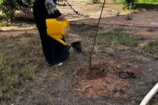 خلال زيارة لطالبات الجامعة يقمنّ فيها بإكمال التشجير لمنطقة الإسكان الجامعي،