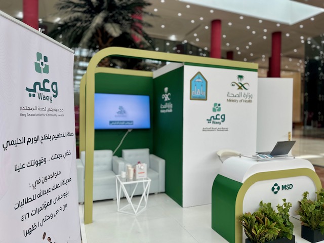 نظّمت جمعية وعي لصحة المجتمع بالتعاون مع إدارة الفعاليات والملتقيات التابعة لعمادة شؤون الطلاب وكلية الطب والمركز الطبي الجامعي حملة توعوية للقاح فيروس الورم الحليمي، وذلك في يوم الأحد الخامس من شهر أكتوبر من العام ألفين وخمسة وعشرين من السنة الميلادية في بهو مبنى المؤتمرات (416) من الساعة الثامنة صباحاً وحتى الواحدة ظهراً، حيث استقبلت ورحبت مساعد مدير إدارة الفعاليات والملتقيات بالعمادة أ. وضحى السبيعي بممثلات جمعية وعي لصحة المجتمع، كما قدمت لهنّ كافة الدعم اللازم لتسهيل التجهيز والإعداد، وقد استهدفت الحملة تعزيز الوقاية الصحية لدى طالبات الجامعة ومنسوباتها، من خلال رفع مستوى الوعي بأهمية اللقاح في الوقاية من الأمراض المرتبطة به، كما سعت الحملة المقامة إلى غرس ثقافة صحية قائمة على مبدأ الوقاية خير من العلاج، وتشجيع المجتمع على تبني السلوكيات الصحية الإيجابية والتي قدمها الفريق الطبي المتخصص والمشرف على الحملة من خلال الإجابة على الأسئلة والاستفسارات، إلى جانب تقديم جرعة اللقاح للراغبات من طالبات الجامعة ومنسوباتها بإشراف من وزارة الصحة، كما تم توزيع المنشورات التثقيفية والتوعوية التي تشرح ماهية الفيروس، وطرق انتقاله والوقاية منه، وأهمية اللقاح.