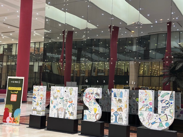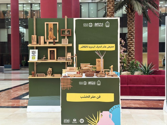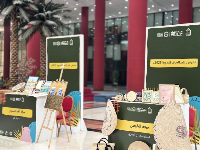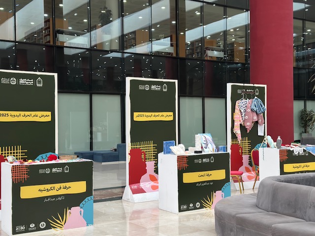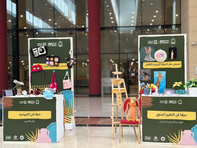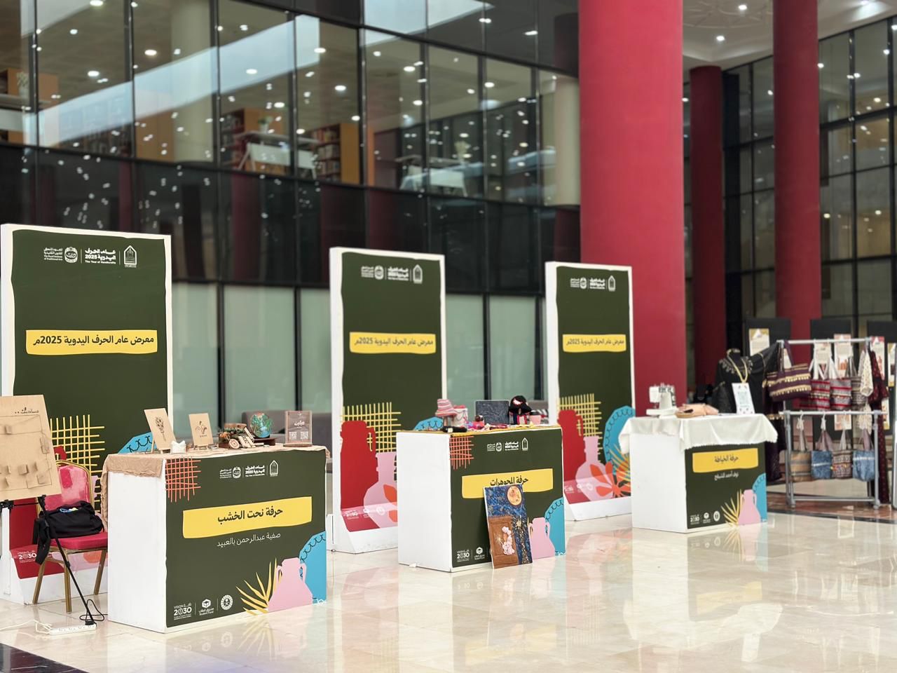 ​جددت عمادة شؤون الطلاب ممثلة بقسم البرامج والأنشطة التزامها بتمكين المواهب الفنية لطالبات الجامعة وذلك من خلال إقامتها لمعرض الحرف اليدوية 2025م بتعاونٍ مع المعهد الملكي للفنون التقليديّة (وِرث) وبدعم من صندوق الطلاب، وعلى مدى يومين ابتداءً من الثاني عشر من شهر نوفمبر من العام ألفين وخمسة وعشرين من السنة الميلادية في بهو المبنى الإداري 416 بالمدينة الجامعية للطالبات، حيث قامت سعادة وكيلة الجامعة للتطوير المؤسسي والمسؤولية المجتمعية د. خلود بنت فواز التميمي بتدشين المعرض بحضور سعادة وكيلة عمادة شؤون الطلاب لشؤون الطالبات د. عهود بنت عثمان المنيع وجمعُ من منسوبات الجامعة وطالباتها، حيث جاء هذا المعرض متميزًا بتعدد الأركان وتنوعها من خلال مشاركة خمسة عشر حرفية وهن: جميلة قلم لحرفة القط العسيري، وهديل العنزي لحرفة الخوص، ومنيرة البداح لحرفة السدو السعودي، وجود البراك، وصفية بالعبيد: لحرفة النحت على الخشب، ونجود باخشوين، ومنال بن دايل، وحياة رجب، ونوف المشيقح، ولولو السكران: لحرفة الخياطة والتطريز، وحنين بن زيد: لحرفة صناعة المجوهرات، وفجر العتيبي، وتقى أغا، وسوسن خيبري، وتاكوادار عبد الجبار: لحرفة فن الكروشيه، وكذلك أ. نورة السيف و أ. سامية الشهري من قسم البرامج والأنشطة لحرفة الخط على الفخار، وقد تفرّد هذا المعرض بروح فنية نابضة تجسدت في ورش العمل التي قدمها المعهد الملكي للفنون التقليديّة (وِرث)، الشريك الوطني الأبرز في إحياء التراث الحرفي وإبرازه بصورة عصرية تليق بامتداده الثقافي العريق مما يسعى إلى الربط بين الذاكرة البصرية للحرف التقليدية وبين التعبير التشكيلي المعاصر، في مساحة فنية مفتوحة تشجع على الإبداع والتجريب وتسجيل الحضور الثقافي للطالبات، وقد جاءت تلك الورش بعدد من الاختصاصات منها: ورشة صناعة ميدالية من السدو، والتي قدّمت تجربة عملية تحيي مهارات النسج التقليدي بأسلوب تعليمي دقيق، يعكس الحرفية العالية التي يُعرف بها (وِرث)، كما تم إقامة ورشة تطريز فاصل كتاب، جمعت بين اللمسة الجمالية والوظيفة العملية، مقدمة نموذجًا عن كيفية ترجمة التراث إلى منتجات معاصرة ذات استخدام يومي، إن حضور وِرث في الجامعة ليس مجرد تفعيل لمعرض أو حضورٍ لورشٍ تعليمية، بل هو جسر بين ذاكرة المكان وعيون المبدعات الجدد، وقد عبّرت الدكتورة عهود بنت عثمان المنيع عن امتنانها لشريك المعرض وِرث، مشيدةً بدوره في إعادة نبض التراث إلى الحاضر من خلال مشاركته المتميزة التي جمعت بين عبق الأصالة وروح الابتكار، وأوضحت سعادتها أن هذه المشاركة تجسّد جمال الحِرَف السعودية وتُبرز الإرث الوطني بوصفه مصدر إلهام للأجيال الجديدة، مشيرةً إلى أن هذا المعرض جاء موكدًا دور عمادة شؤون الطلاب في دعم المواهب الفنية لطالبات الجامعة، وتعزيز حضورهن الإبداعي في الأنشطة الثقافية والفنية.​