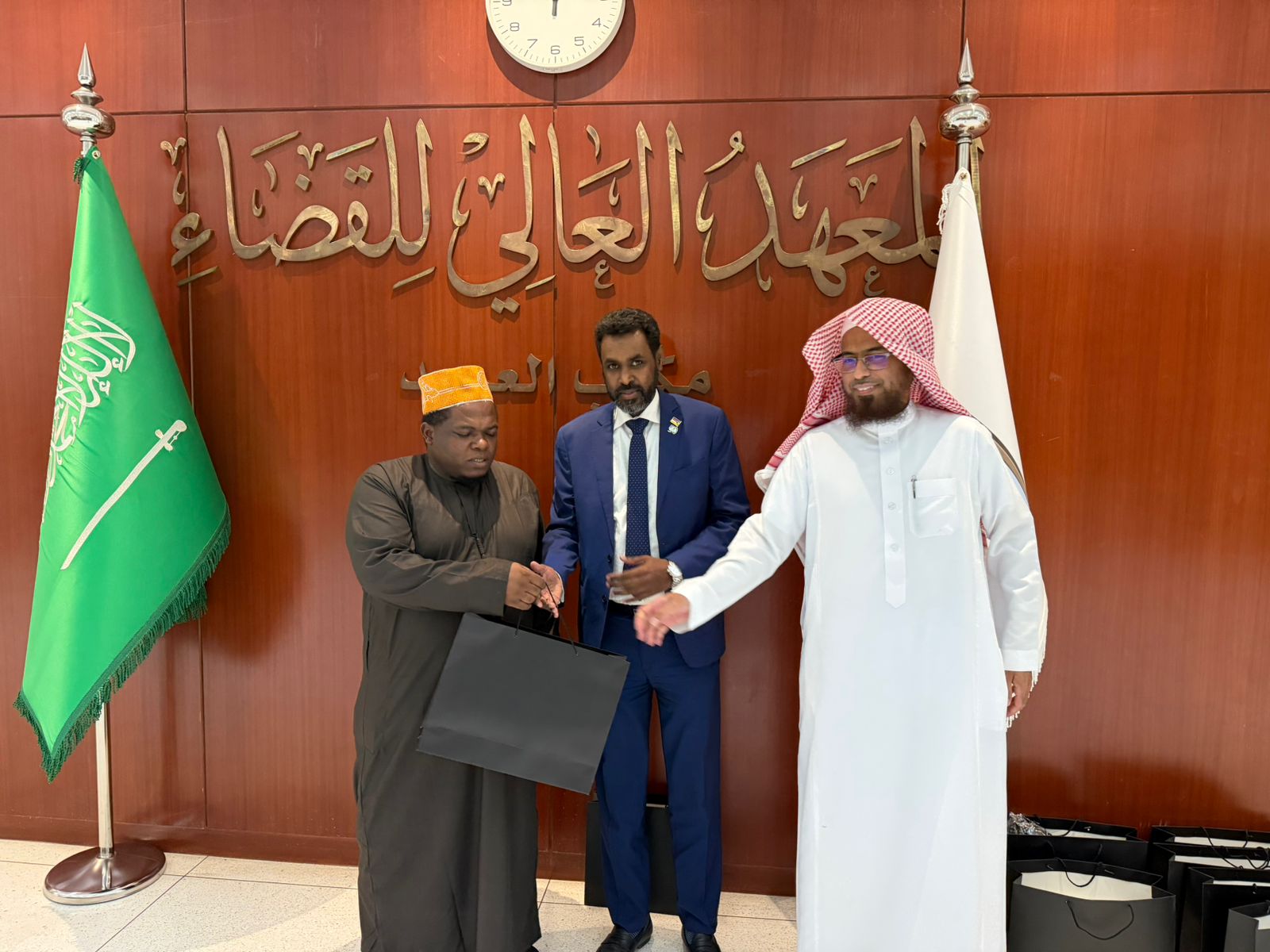 وفي بداية اللقاء رحب فضيلة العميد بسعادته وأصحاب الفضيلة القضاة، مثمناً زيارته للمعهد، ومشيداً بحرص القضاة المشاركين في الدورة وتفاعلهم الإيجابي، ومعرباً عن أمله في أن تنعكس مخرجات الدورة على تطوير الأداء القضائي في جمهورية القمر المتحدة.