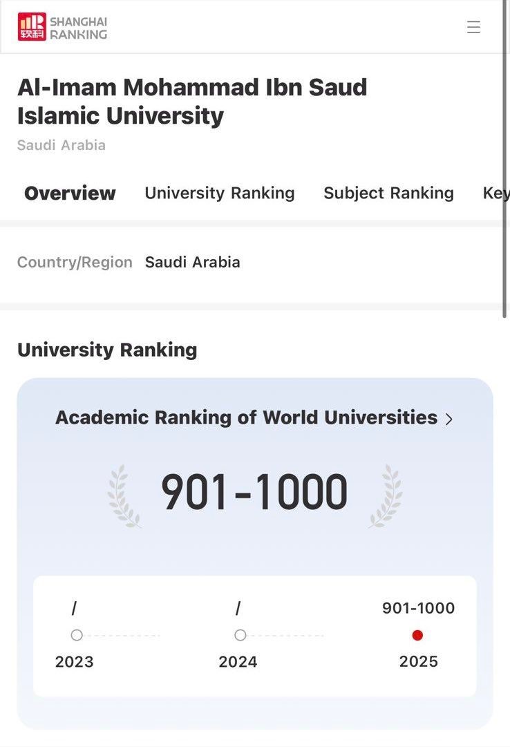 حققت جامعة الإمام محمد بن سعود الإسلامية إنجازا جديدا بانضمامها لقائمة الجامعات المصنفة ضمن تصنيف شنغهاي العالمي (ARWU 2025)، أحد أبرز التصنيفات الدولية التي تقوم على معايير بحثية دقيقة، تشمل جودة الإنتاج العلمي، معدلات الاستشهاد، وعدد الحاصلين على جوائز أكاديمية مرموقة.