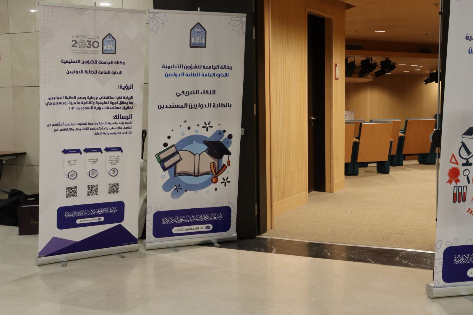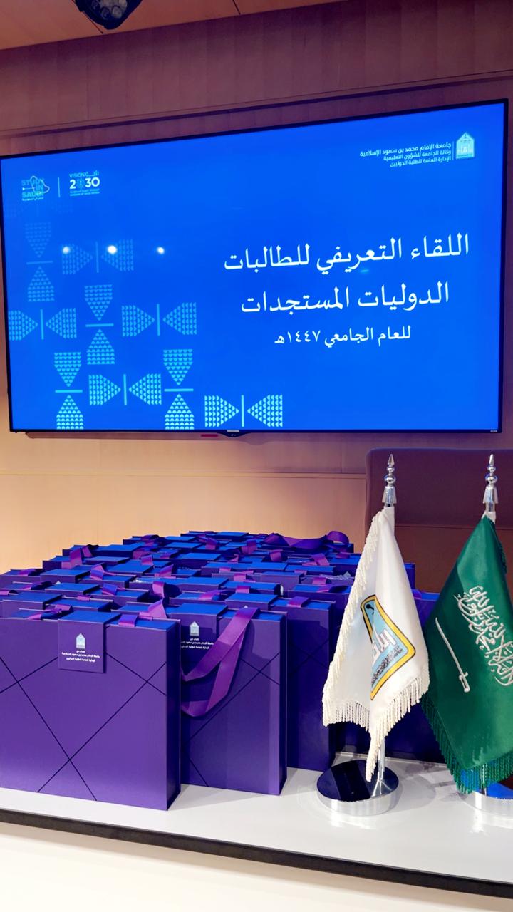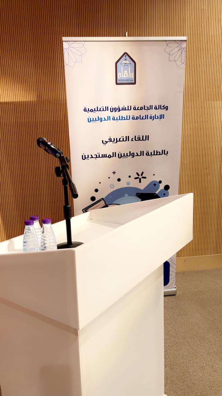 نظمت وكالة الجامعة للشؤون التعليمية ممثلة في الإدارة العامة لطلبة الدوليين اللقاء التعريفي للطالبات الدوليات المستجدات، صباح يوم الاثنين تاريخ ٢٣ / ٣ / ١٤٤٧ هـ، وذلك بالقاعة المساندة بمبنى المؤتمرات – مدينة الملك عبدالله للطالبات.