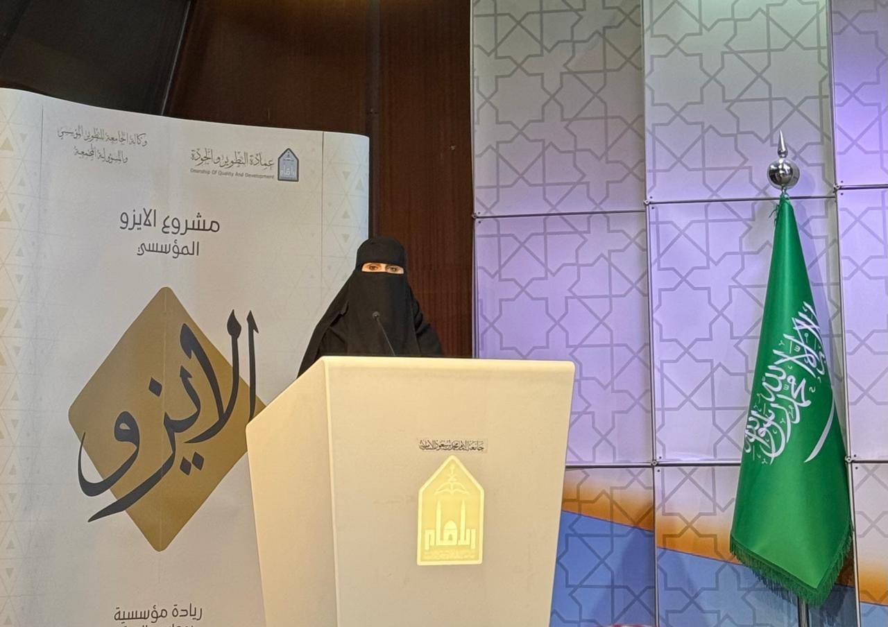 وفي كلمة لها خلال الحفل أكدت سعادة وكيلة الجامعة للتطوير المؤسسي والمسؤولية المجتمعية أن هذا الإنجاز يمثل تتويجًا لمسار استراتيجي ضمن الخطة الجامعية 2025، ولا سيما غايتها السابعة الهادفة إلى تحقيق التميز المؤسسي ورفع كفاءة الأداء. وأضافت أن نجاح مشروع الآيزو المؤسسي بنسبة 100% يعكس وعي الجامعة بأهمية الجودة كركيزة للتحول المؤسسي وانسجامًا مع مستهدفات رؤية المملكة 2030 التي جعلت من الشفافية وتجويد الأداء الحكومي أساسًا للتطوير والتميز.