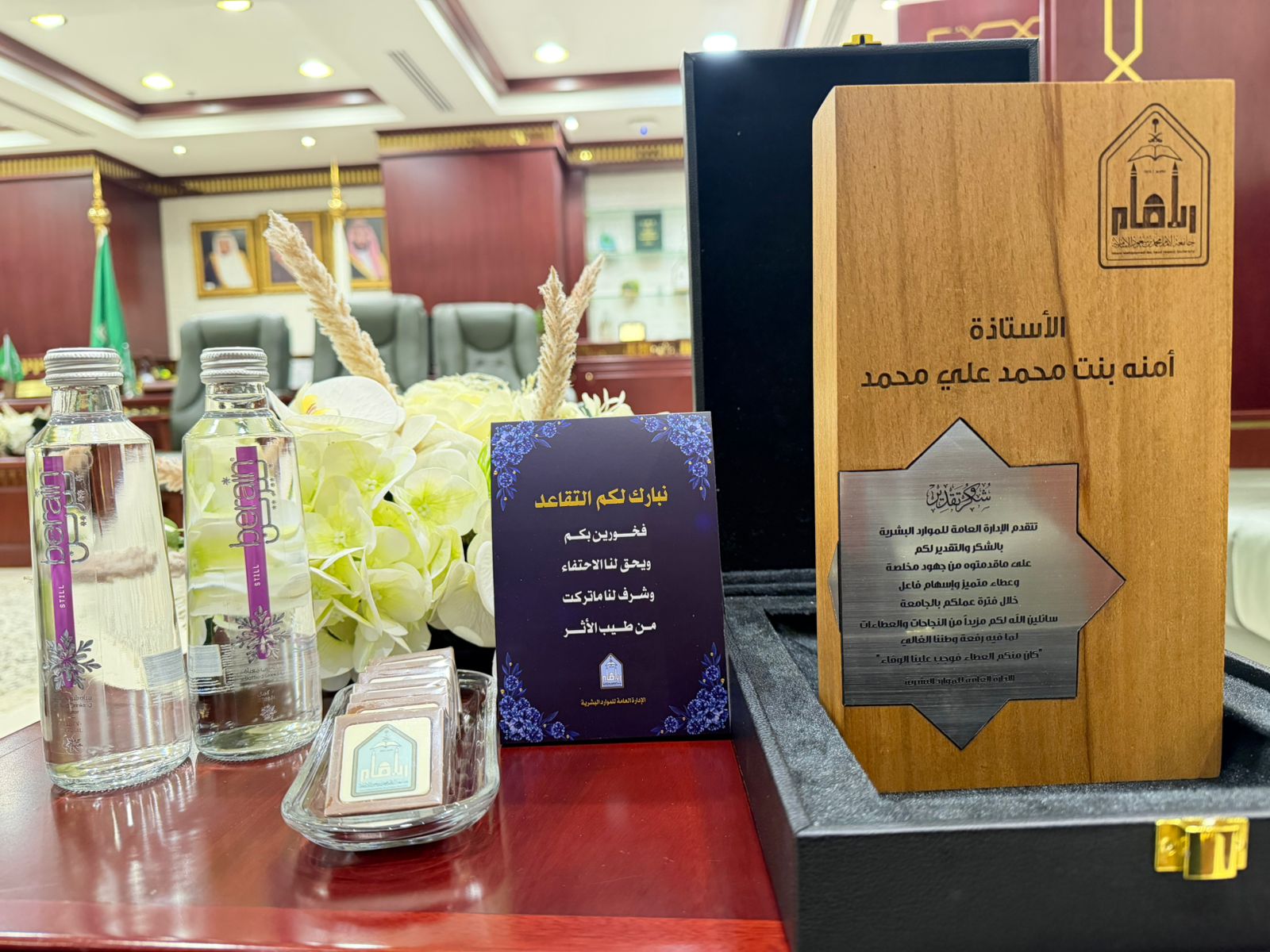 تقديرًا للجهود المبذولة والعطاء الممتد، ونيابة عن معالي رئيس الجامعة الأستاذ الدكتور أحمد بن سالم العامري كرّمت وكيلة الجامعة للتطوير المؤسسي والمسؤولية المجتمعية د. خلود بنت فواز التميمي صباح اليوم الأربعاء الموافق ١١/٧/١٤٤٧هـ المتقاعدات من الكادرين الأكاديمي والإداري، وذلك في مكتبها بمدينة الملك عبدالله للطالبات.
