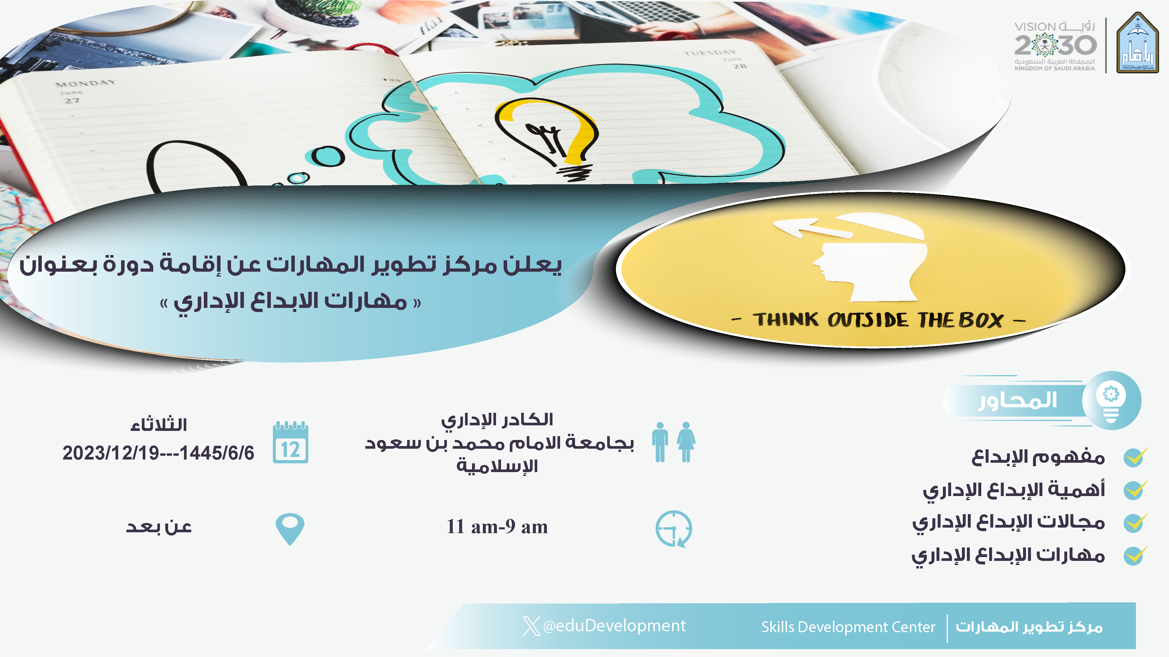 عن تنفيذ دورة تدريبية بعنوان ( مهارات الإبداع الإداري )