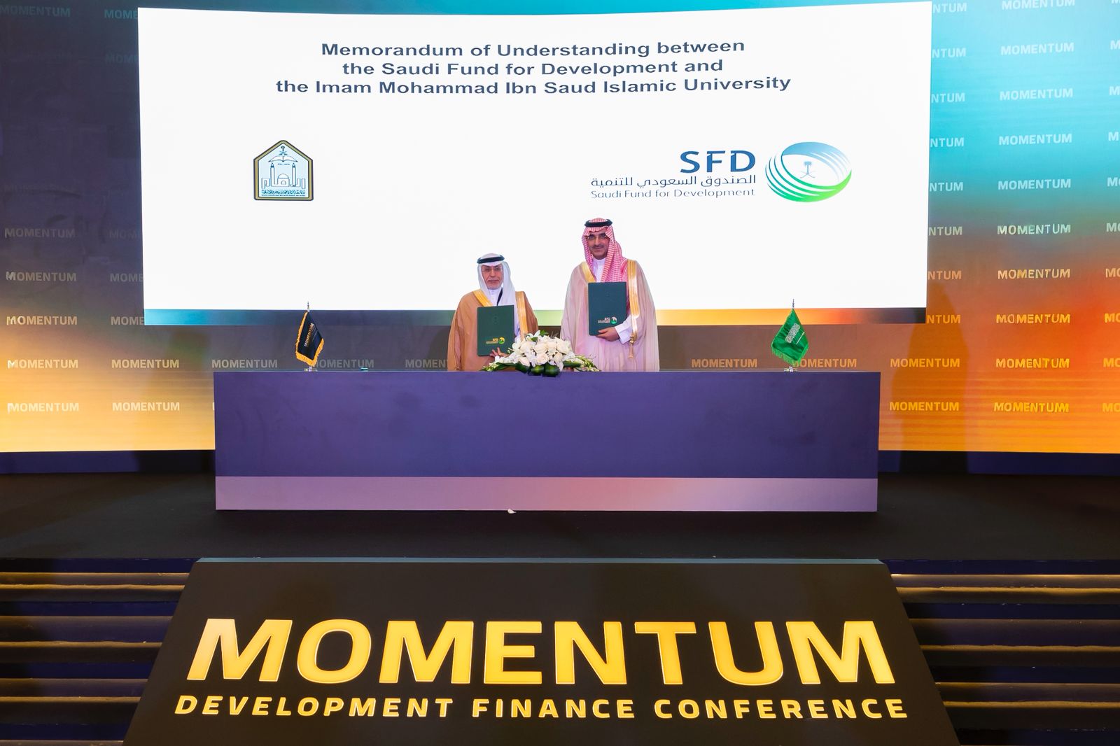 وقّعت جامعة الإمام محمد بن سعود الإسلامية اليوم الخميس 20 جمادى الآخرة 1447هـ الموافق 11 ديسمبر 2025م اتفاقية تعاون نوعية مع الصندوق السعودي للتنمية، وذلك على هامش مؤتمر التمويل التنموي المُنعقد برعاية كريمة من صاحب السمو الملكي الأمير محمد بن سلمان بن عبدالعزيز آل سعود، ولي العهد رئيس مجلس الوزراء – حفظه الله – في مدينة الرياض.
