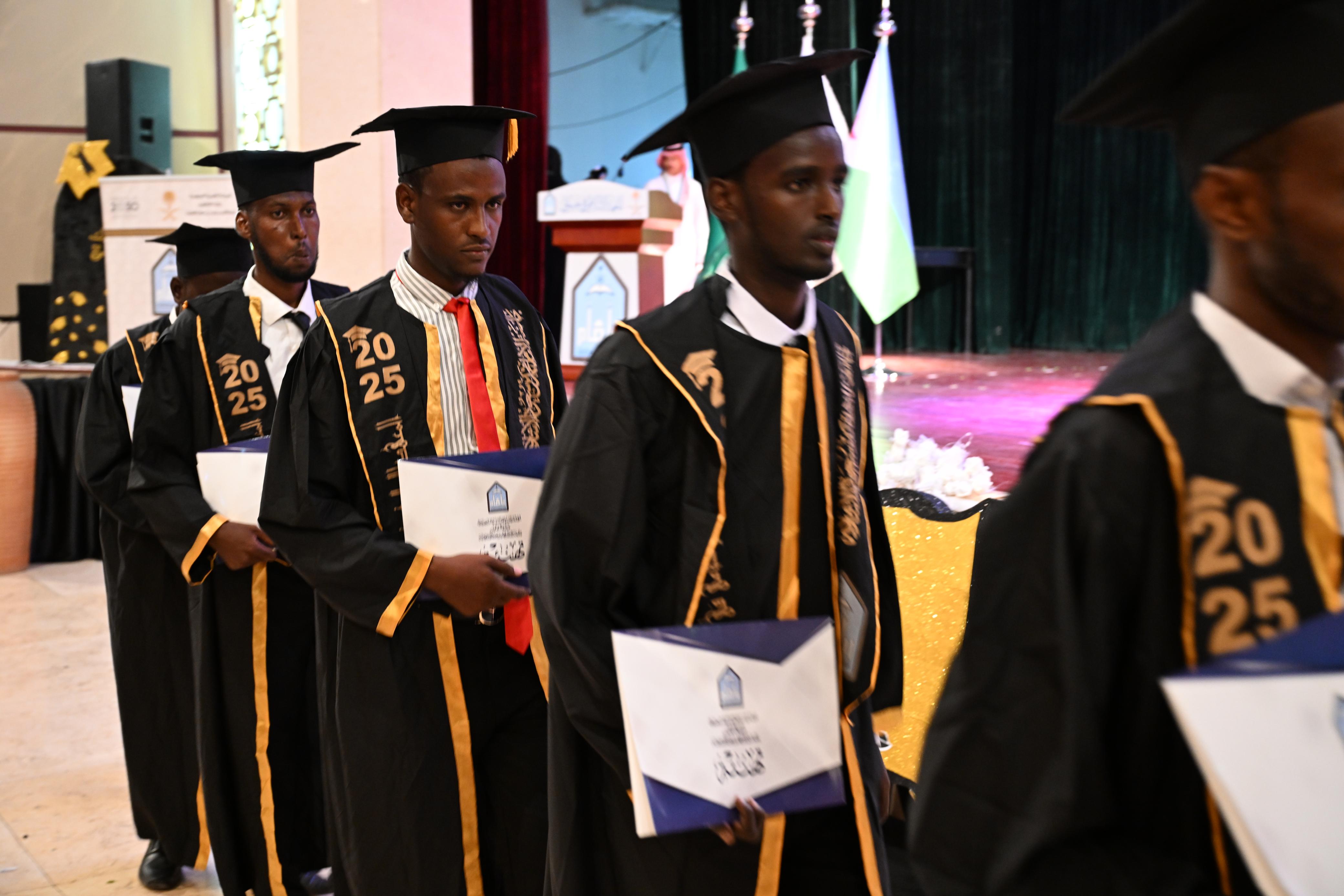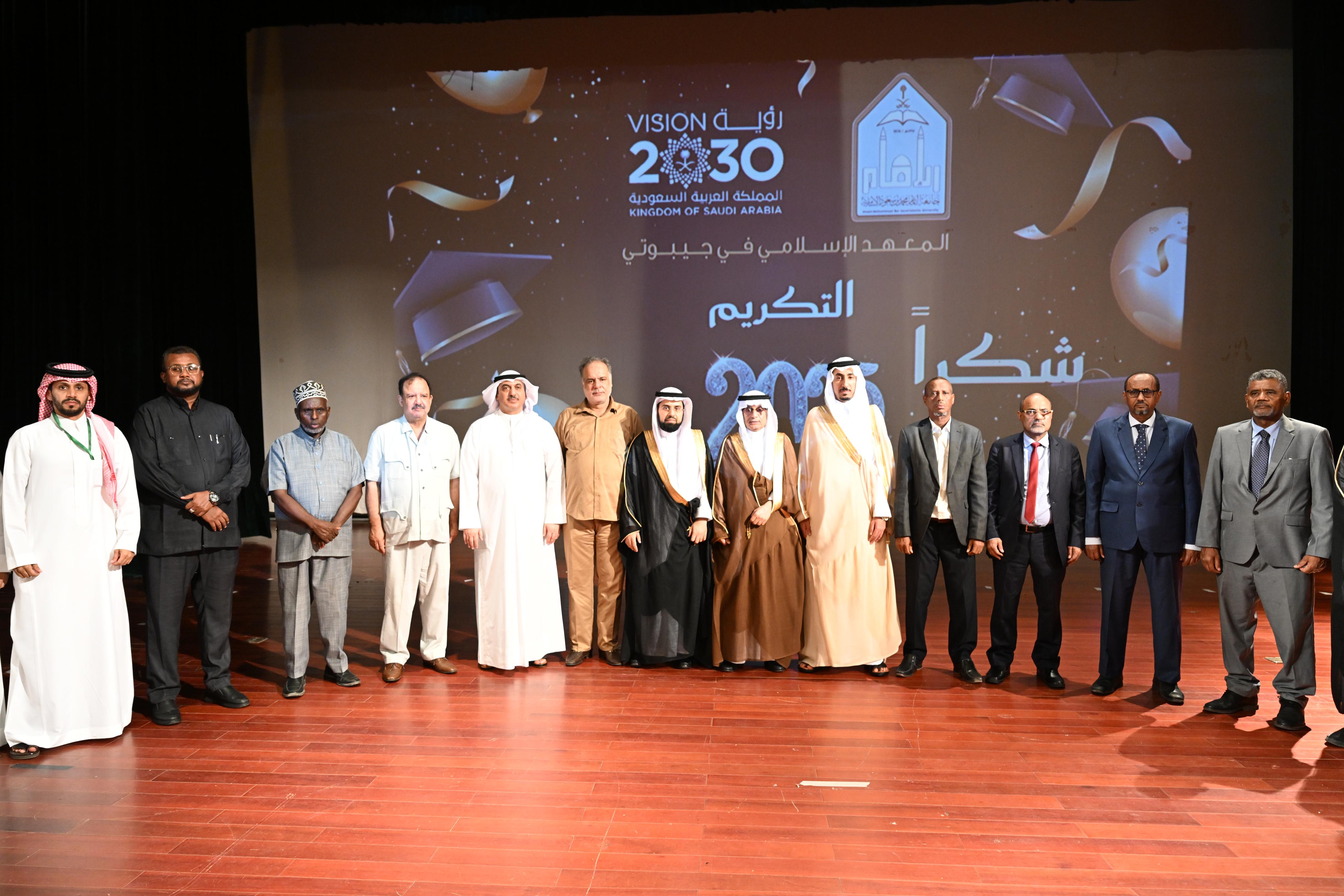 نيابةً عن معالي رئيس الجامعة الأستاذ الدكتور أحمد بن سالم العامري، رعى وكيل الجامعة للشؤون التعليمية د. عبدالله بن عبدالرحمن الأسمري، مساء اليوم الخميس ١٤٤٦/١١/١٦هـ حفل تخرج طلاب وطالبات المعهد الإسلامي في جيبوتي للعام الدراسي ١٤٤٦هـ، بحضور سفير خادم الحرمين الشريفين لدى جيبوتي أ. سلطان بن فيصل القباني، وعميد المعهد د. حاتم بن فالح المدرع، وحضور عدد من الوزراء و السفراء، والذي أقامه المعهد في قاعة قصر الشعب بالعاصمة الجيبوتية.