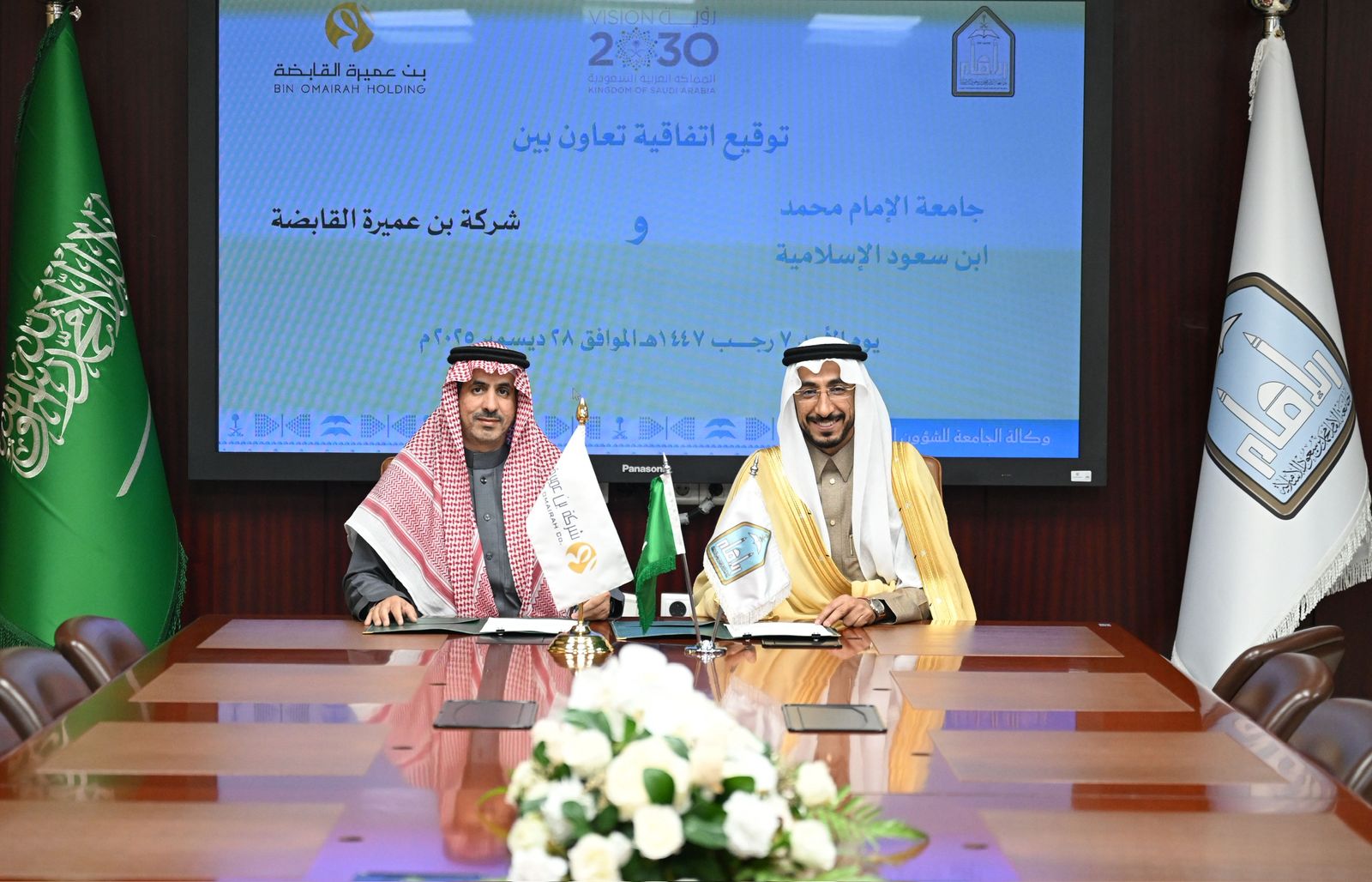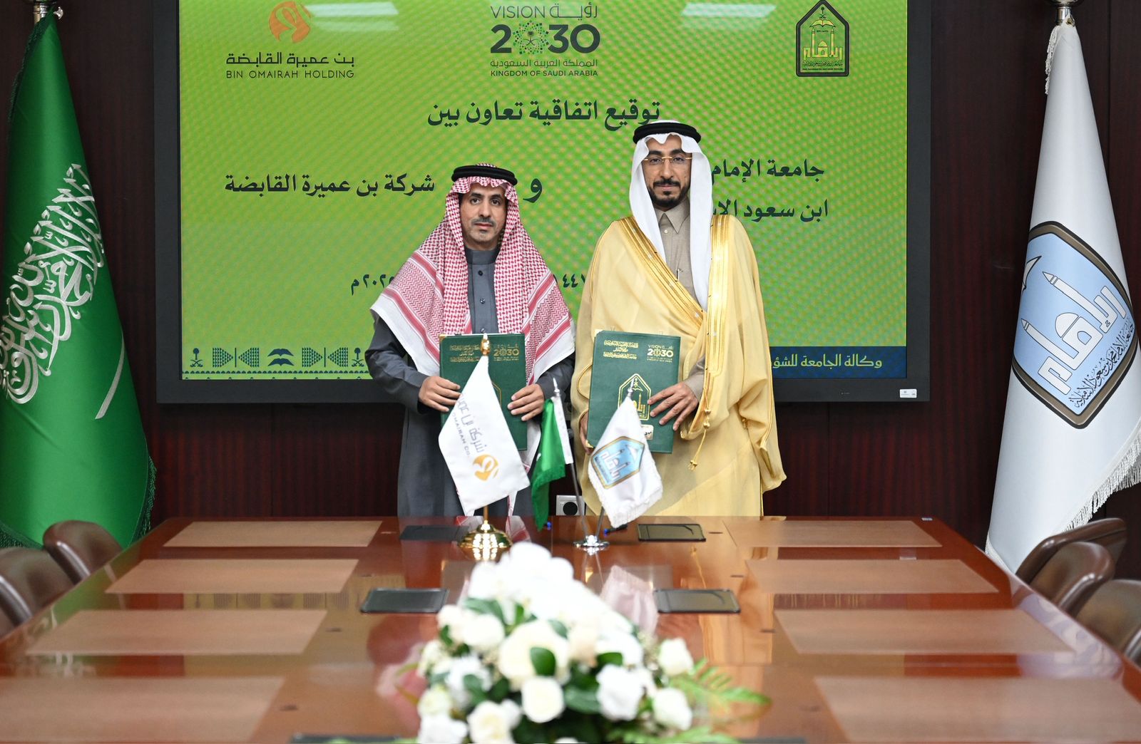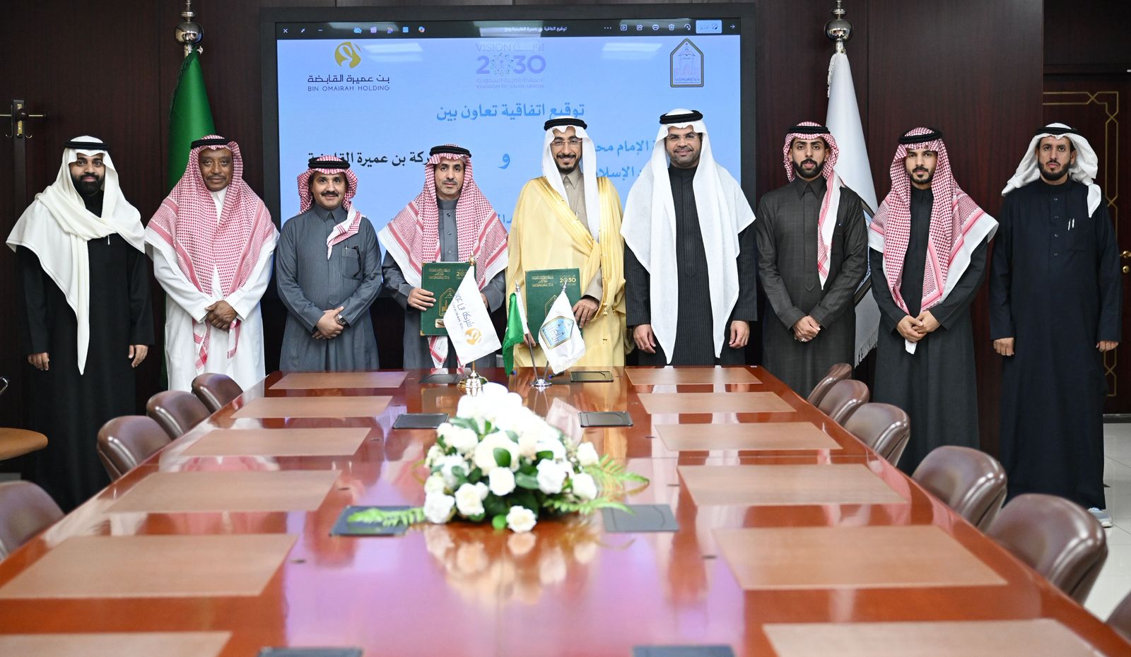 في إطار سعيها المتواصل لتعزيز شراكاتها الاستراتيجية مع القطاع الخاص، وقّعت جامعة الإمام محمد بن سعود الإسلامية اليوم الأحد 8 رجب 1447هـ اتفاقية تعاون مع شركة بن عميرة القابضة، وذلك دعمًا لمسارات التدريب التعاوني وتوظيف الخريجين، وتعزيزًا للتكامل بين مخرجات التعليم واحتياجات سوق العمل.