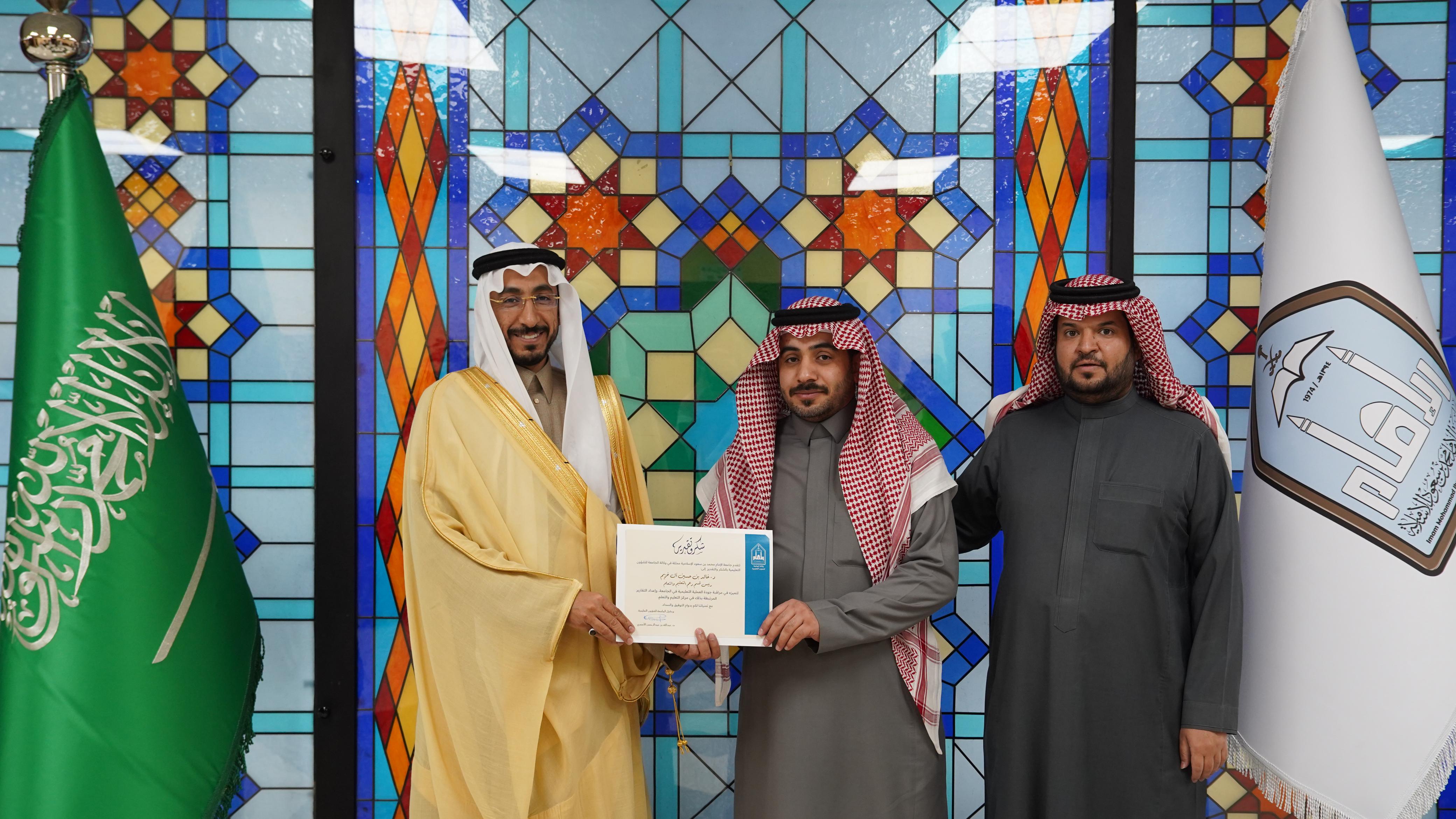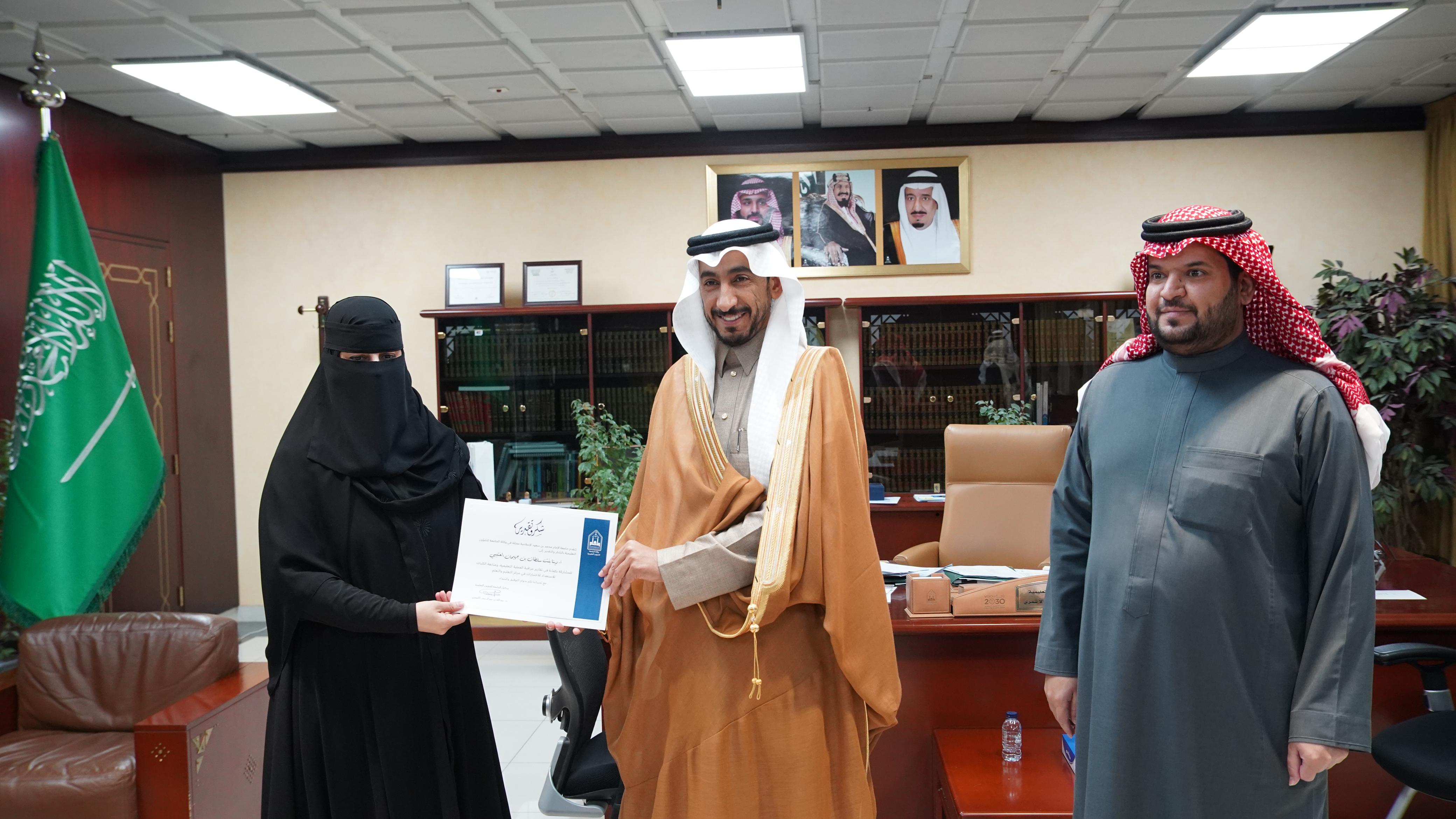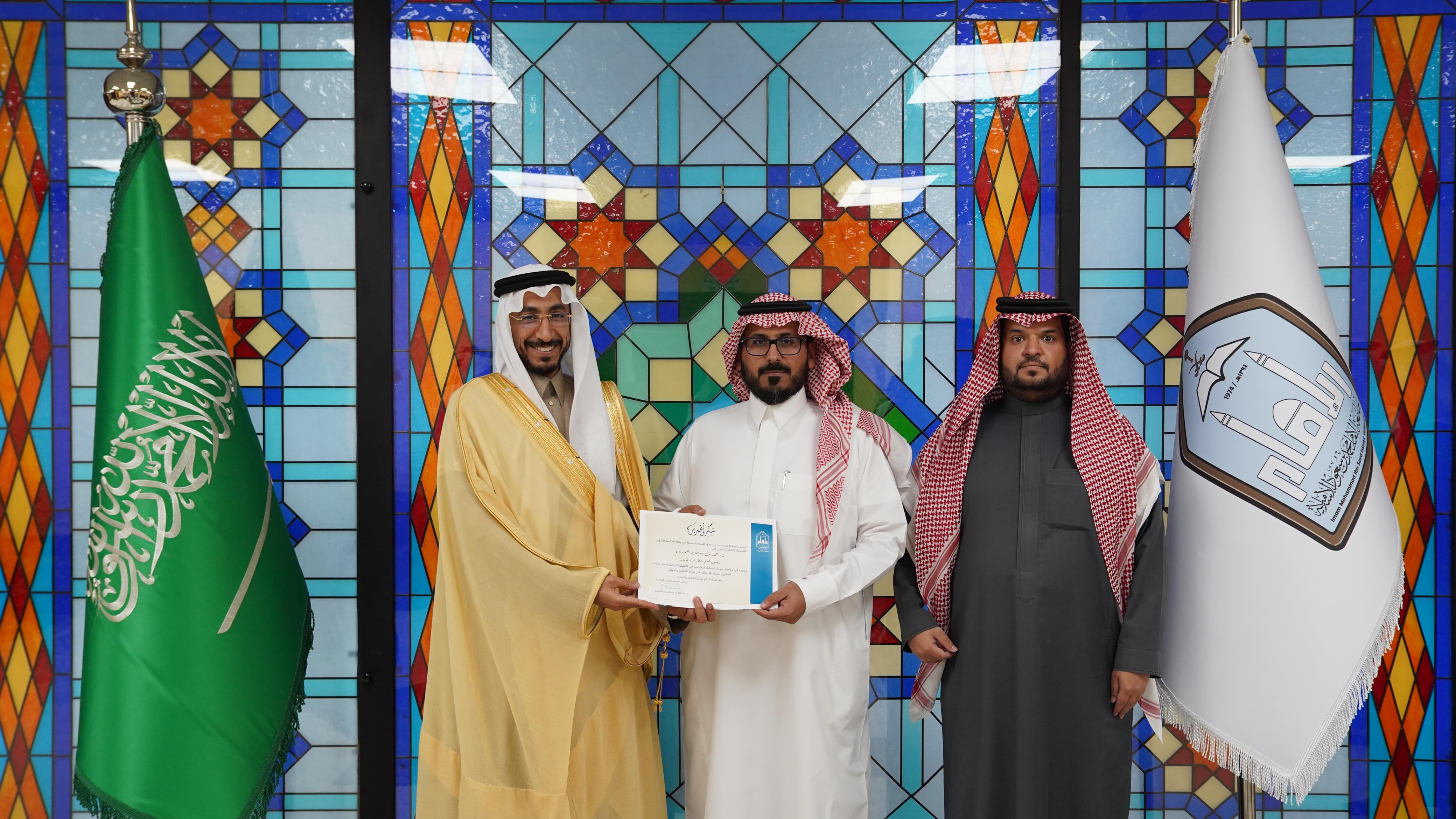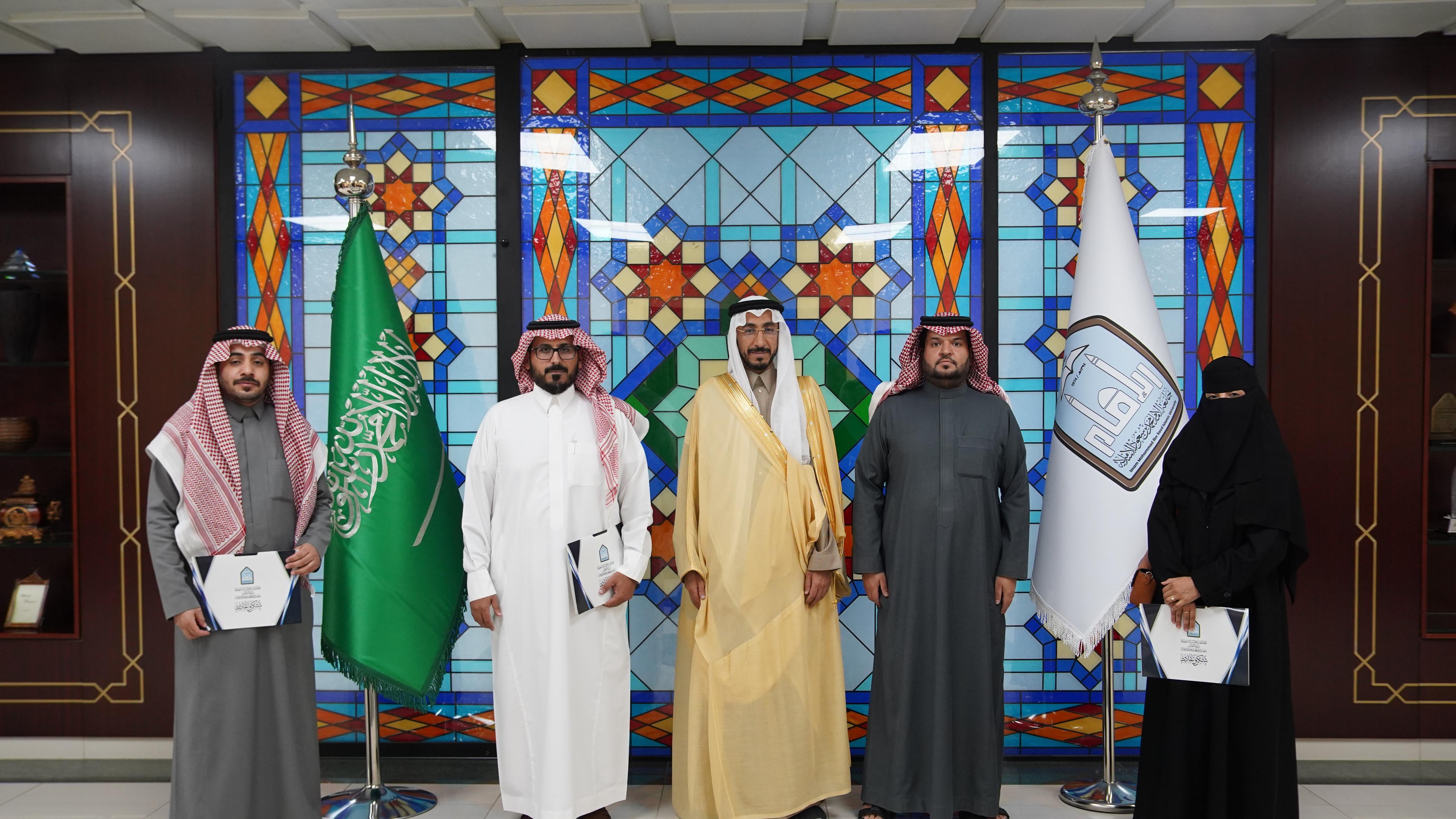 كرّم سعادة وكيل جامعة الإمام محمد بن سعود الإسلامية للشؤون التعليمية، الدكتور عبدالله بن عبدالرحمن الأسمري، الموظفين المتميزين في مركز التعليم والتعلّم، وذلك خلال لقاء أُقيم في مكتب سعادته اليوم الأربعاء 31 ديسمبر 2025م، تقديرًا لعطائهم المهني وإسهاماتهم النوعية، وبحضور مدير المركز الدكتور/ أحمد بن ختيم العتيبي