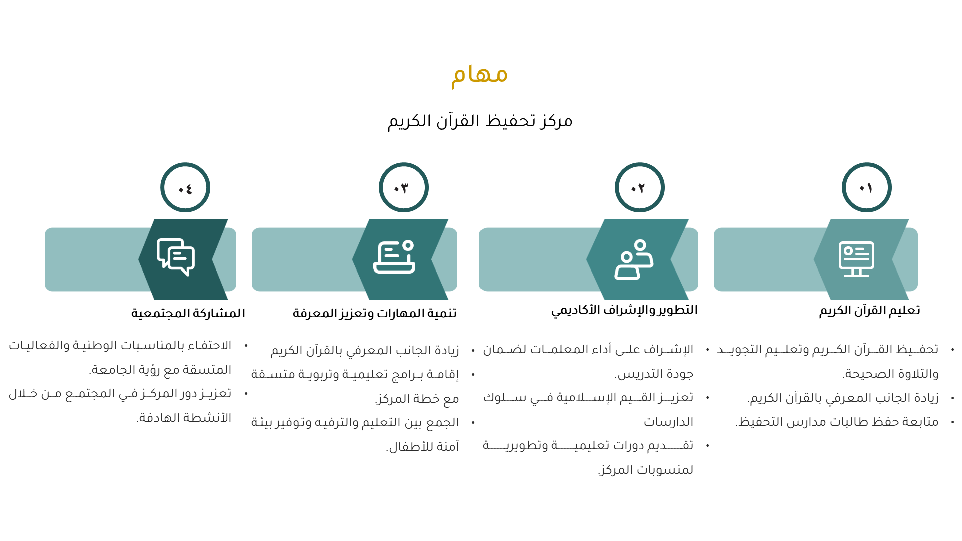 Skip Navigation Linksالإدارة العامة لتطوير الأعمال والاستثمار مركز تحفيظ القران الكريموحدة إدارة الجودة والحوكمة